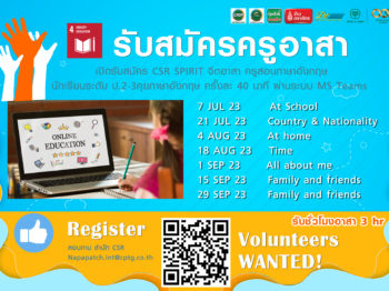 รับสมัคร ครูอาสาสอนภาษาอังกฤษนักเรียน ป.2-3 โรงเรียน ซอ […]