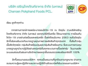 จากสถานการณ์การแพร่ระบาดของโควิด-19 ณ ปัจจุบัน CPF และบ […]
