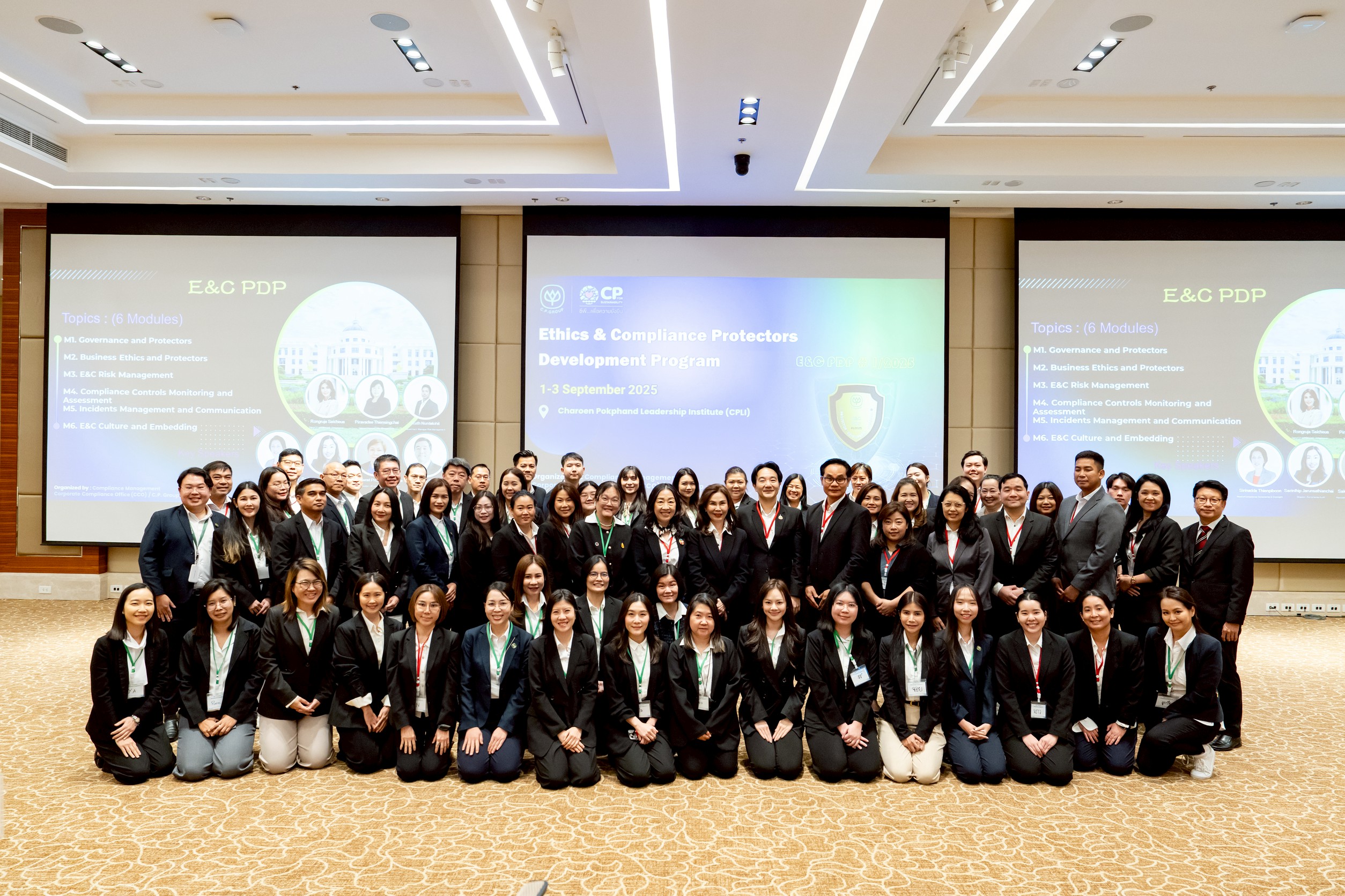 ระหว่าง วันที่ 1-3 กันยายน 2568 สำนักกำกับการปฏิบัติตามกฎเกณฑ์ (CCO) ร่วมกับสถาบันผู้นำเครือเจริญโภคภัณฑ์ (CPLI) นำโดย คุณวรวิทย์ วรุตบางกูร หัวหน้าคณะผู้บริหารด้านกำกับการปฏิบัติตามกฎเกณฑ์ คุณหิรัญ พบลาภ ผู้อำนวยการด้านกำกับการปฏิบัติตามกฎเกณฑ์ เครือเจริญโภคภัณฑ์ จัดหลักสูตร พัฒนาบุคลากรเป็น “ผู้พิทักษ์ – Protector” เพื่อเสริมสร้างความรู้ และทักษะด้านการกำกับการปฏิบัติตามกฎเกณฑ์ การบริหารความเสี่ยง และการกำกับดูแลกิจการอย่างยั่งยืนให้เกิดขึ้นในองค์กรเครือเจริญโภคภัณฑ์ ผ่านหลักสูตร Ethics and Compliance Protector Development Program (E&C PDP รุ่นที่ 1) ณ สถาบันผู้นำเครือเจริญโภคภัณฑ์ และผ่านระบบ Online สำหรับเขตประเทศจีน แก่ผู้บริหารด้านการกำกับดูแลกิจการ บริหารความเสี่ยง และการกำกับการปฏิบัติตามกฎเกณฑ์ ของกลุ่มธุรกิจในเครือฯ จำนวน 24 กลุ่มธุรกิจในประทศไทย และ 43 เขตธุรกิจในประเทศจีน ผู้ร่วมอบรม  รวมทั้งสิ้น 145 คน  เป็นการแลกเปลี่ยนมุมมองของผู้เข้าร่วมอบรม และประสบการณ์จากวิทยากรผู้เชี่ยวชาญภายในเครือฯ อาทิ คุณรงค์รุจา สายเชื้อ รองกรรมการผู้จัดการอาวุโส ด้านธรรมาภิบาล อย่างเข้มข้น