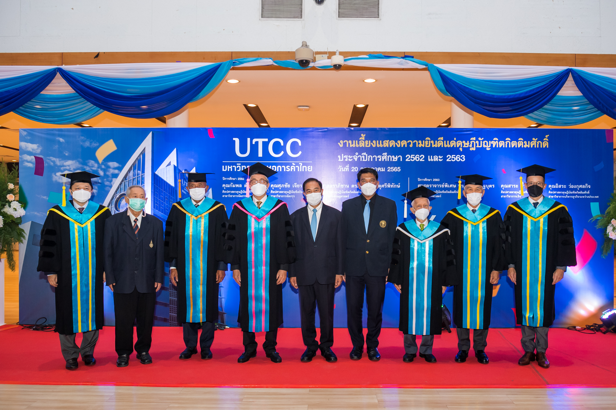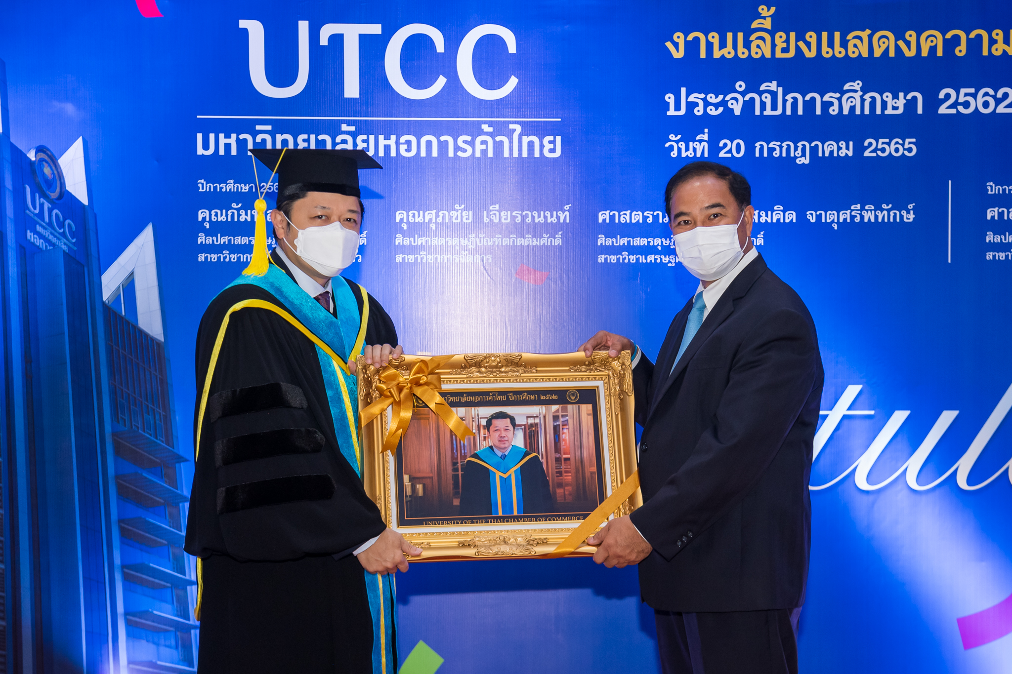 โอกาสนี้มหาวิทยาลัยหอการค้าได้จัดงานเลี้ยงฉลองเพื่อแสดงความยินดีแด่ดุษฎีบัณฑิตกิตติมาศักดิ์ประจำปี 2562-2563 ณ หอประชุม มหาวิทยาลัยหอการค้าไทย ทั้งนี้ดุษฎีบัณฑิตกิตติมศักดิ์ ประจำปี 2562 จำนวน 3 ท่าน ได้แก่ ศาสตราภิชาน ดร.สมคิด จาตุศรีพิทักษ์ อดีตรองนายกรัฐมนตรี ศิลปศาสตรดุษฎีบัณฑิตกิตติมศักดิ์สาขาเศรษฐศาสตร์ คุณกัมพล ตันสัจจา ผู้อำนวยการ บริษัทนงนุชแลนด์สเคป แอนด์ การ์เด้น ดีไซน์ จำกัด ศิลปศาสตรดุษฎีบัณฑิตกิตติมศักดิ์ สาขาวิชาการจัดการการท่องเที่ยว และคุณศุภชัย เจียรวนนท์ ประธานคณะผู้บริหาร เครือเจริญโภคภัณฑ์ และประธานกรรมการ บริษัท ทรู คอร์ปอเรชั่น จำกัด(มหาชน) ศิลปศาสตรดุษฎีบัณฑิตกิตติมศักดิ์ สาขาวิชาการจัดการ