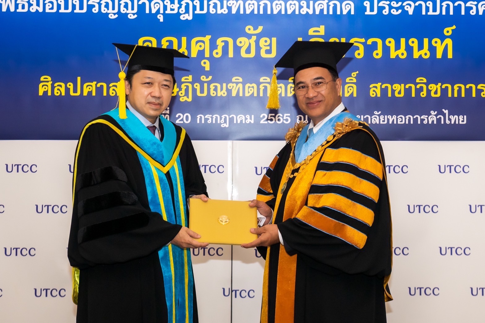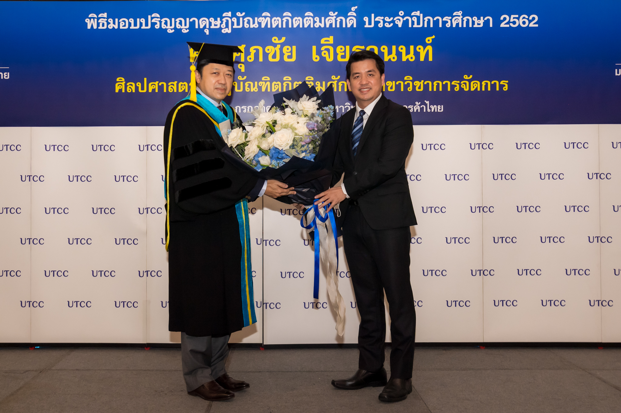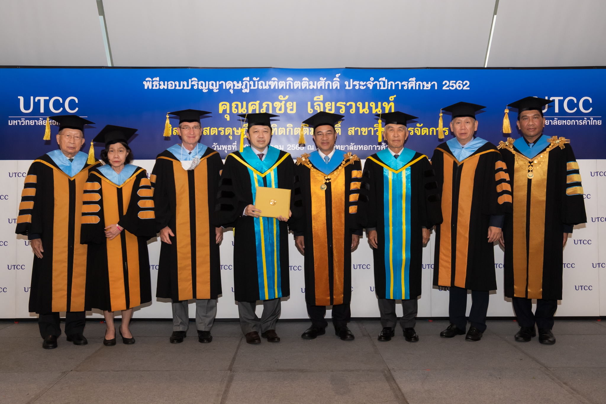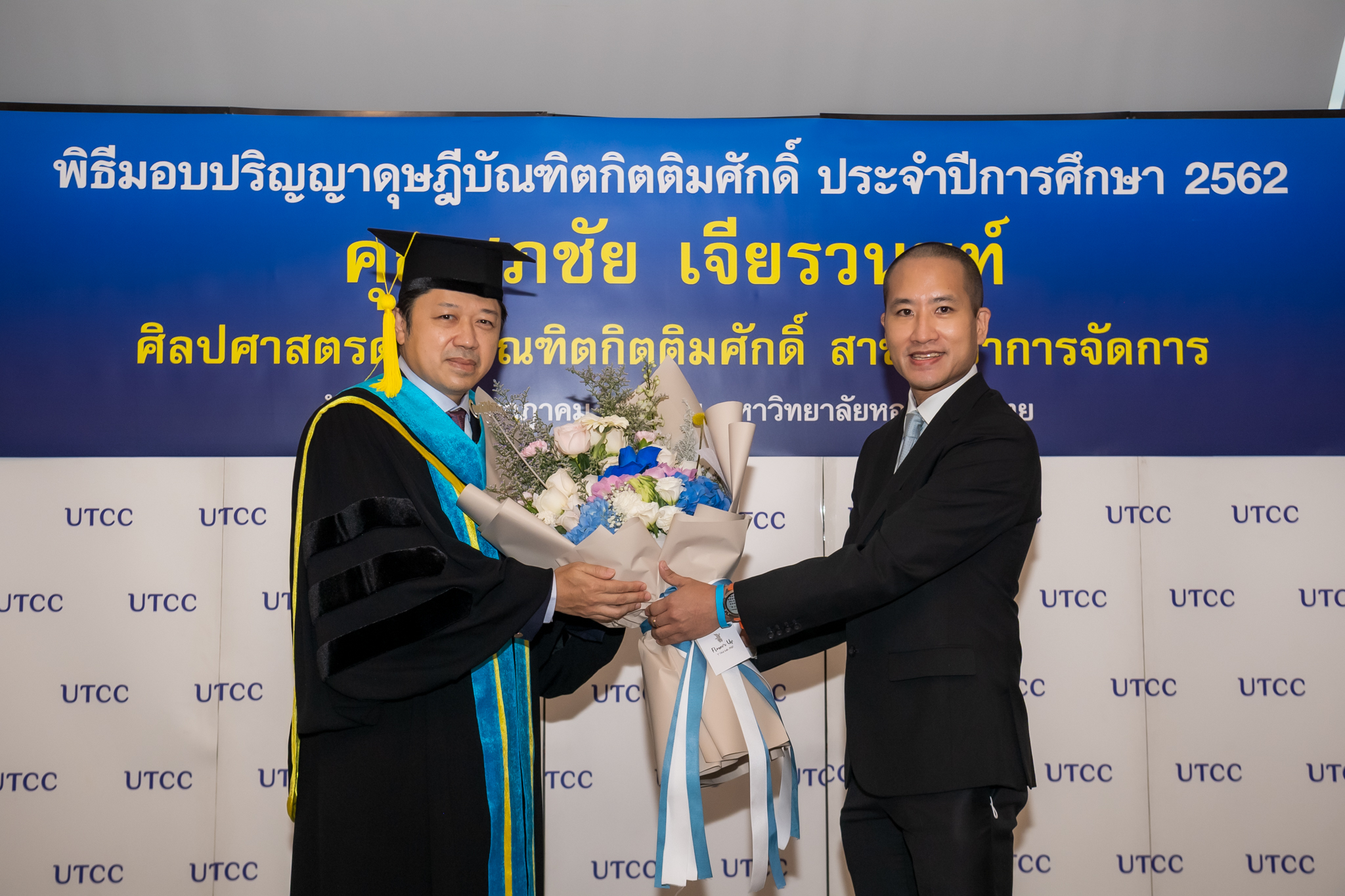 มหาวิทยาลัยหอการค้าไทย จัดพิธีประสาทปริญญาบัตรดุษฎีบัณฑิตกิตติมศักดิ์ สาขาวิชาการจัดการ ประจำปีการศึกษา 2562 ให้แก่ คุณศุภชัย เจียรวนนท์ ประธานคณะผู้บริหาร เครือเจริญโภคภัณฑ์ โดยได้รับเกียรติจาก คุณกลินท์ สารสิน นายกสภามหาวิทยาลัยหอการค้าไทย เป็นผู้ประสาทปริญญาบัตรในฐานะเป็นผู้ทรงคุณวุฒิที่อุทิศตนเป็นประโยชน์ต่อสังคมและประเทศชาติ ณ อาคาร 24 ชั้น 18 มหาวิทยาลัยหอการค้าไทย โดยมีคุณอิสระ ว่องกุศลกิจ ที่ปรึกษากิตติมศักดิ์สภามหาวิทยาลย คุณสนั่น อังอุบลกุล ที่ปรึกษาสภามหาวิทยาลัย Mr.Harald Link ที่ปรึกษาสภามหาวิทยาลัย รศ.ดร.เสาวณีย์ ไทยรุ่งโรจน์ ที่ปรึกษาประจำสภามหาวิทยาลัย คุณเกริกไกร จีระแพทย์ กรรมการสภาผู้ทรงคุณวุฒิ(อุปนายก) และกรรมการสภาผู้ทรงคุณวุฒิของมหาวิทยาลัยหอการค้า พร้อมด้วยครอบครัว อันมี คุณบุษดี เจียรวนนท์-ภริยา คุณกรวัฒน์ เจียรวนนท์-บุตรชาย และคุณกมลนันท์ เจียรวนนท์-บุตรสาว ร่วมแสดงความยินดี