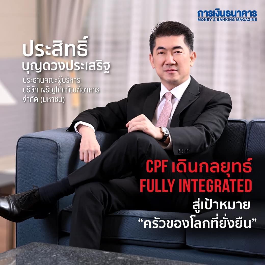 การเงินธนาคาร ได้สัมภาษณ์พิเศษ ประสิทธิ์ บุญดวงประเสริฐ ประธานคณะผู้บริหาร บริษัท เจริญโภคภัณฑ์อาหาร จำกัด (มหาชน) หรือ CPF ถึง การขับเคลื่อน CPF ด้วยกลยุทธ์ Fully Integrated ที่ผสานรวมทุกกระบวนการผลิตเป็นผืนเดียว ใช้ประโยชน์จากเทคโนโลยีดิจิทัล ทั้ง AI และ Cloud Computing สร้างมาตรฐานกลางในทุกขั้นตอน พร้อมลงลึกในทุกรายละเอียด เพื่อก้าวไปสู่เป้าหมายสำคัญคือ การเป็น “ครัวของโลกที่ยั่งยืน”