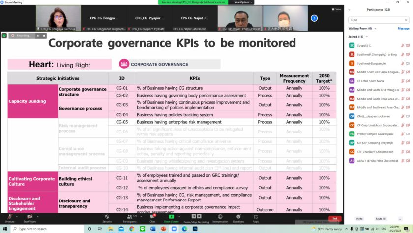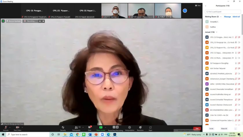 ด้าน คุณรงค์รุจา สายเชื้อ รองกรรมการผู้จัดการอาวุโส ด้านธรรมาภิบาล สำนักบริหารความยั่งยืน ธรรมาภิบาลและสื่อสารองค์กร เครือฯ ได้กล่าวแสดงความขอบคุณแก่สมาชิก CG Network ในการร่วมขับเคลื่อนธรรมาภิบาลและกล่าวสรุปผลการดำเนินงานด้านธรรมาภิบาลของเครือฯในปี 2564 ถึงความโปร่งใสในการเปิดเผยข้อมูลและการสร้างความสัมพันธ์กับผู้มีส่วนได้เสีย กระบวนการกำกับดูแลกิจการ รวมถึงนโยบายและข้อปฏิบัติต่างๆ