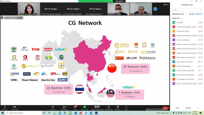 เมื่อวันที่ 24 ธันวาคม 2564 เครือเจริญโภคภัณฑ์ หรือเครือซีพี จัดงาน “CG Network Recognition Awards 2021” ต่อเนื่องเป็นปีที่ 2 เพื่อมอบเกียรติบัตรเชิดชูกลุ่มธุรกิจของเครือฯ ที่ร่วมเป็นกำลังสำคัญในการขับเคลื่อนองค์กรด้วยหลักธรรมาภิบาลอันเป็นหัวใจหลักในการบรรลุเป้าหมายความยั่งยืนภายในปี 2030 ซึ่งในปีนี้จัดงานรูปแบบออนไลน์ โดยมีคุณสุภกิต เจียรวนนท์ ประธานกรรมการ เครือซีพี ให้เกียรติเข้าร่วมพิธีและให้โอวาทแก่ผู้เข้าร่วมงาน
