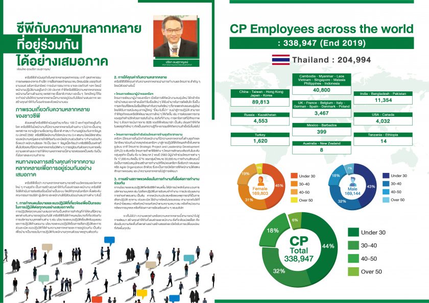 Diversity & Inclusion เป็นเรื่องที่เครือเจริญโภคภัณฑ์ให้ความสำคัญมาโดยตลอด ไม่ว่าจะเป็นเชื้อชาติใด ประเทศใด เพศสภาพใด หรือผิวสีอะไร เราทุกคนคือชาวซีพี ที่ร่วมเป็นพลังสำคัญแห่งความก้าวหน้าของเครือเจริญโภคภัณฑ์ให้ยั่งยืนต่อไป