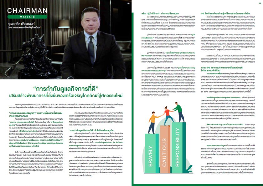 ในคอลัมน์ Chairman Voice คุณสุภกิต เจียรวนนท์ ประธานกรรมการ เครือฯ ให้เกียรติสัมภาษณ์พิเศษแบ่งปันวิสัยทัศน์ของเครือฯตั้งแต่เริ่มต้นจนถึงปัจจุบันที่ดำเนินกิจการเข้าสู่ปีที่ 100