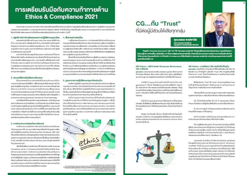 Ethics Compliance จริยธรรมและการปฏิบัติตามกฏเกณฑ์มีความสำคัญมากขึ้น หลังจากรูปแบบการทำงานปรับเปลี่ยนเป็น Work from Home เป็นเหมือนเกราะป้องกันไม่ให้องค์กรธุรกิจทำในสิ่งที่ไม่ถูกต้องและมีความรับผิดชอบต่อผู้มีส่วนได้เสียทุกกลุ่ม