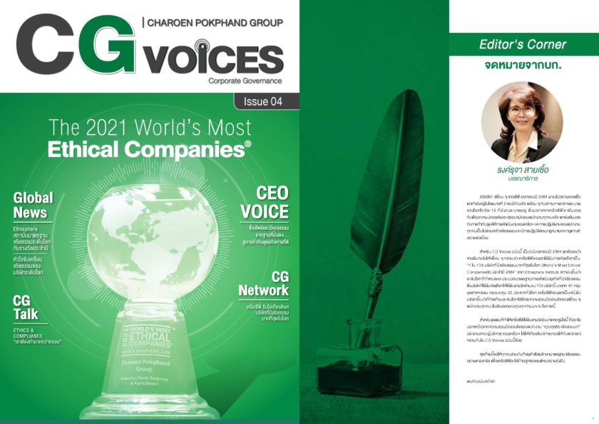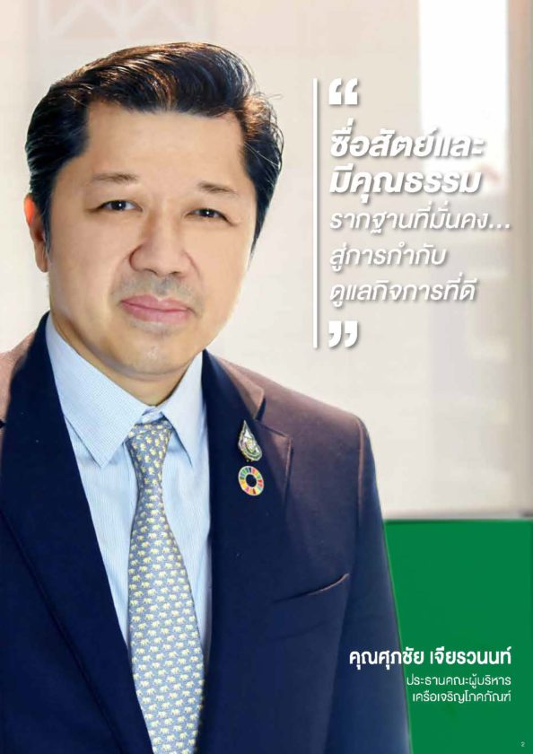 ในคอลัมน์ Chairman Voice คุณศุภชัย เจียรวนนท์ ประธานคณะผู้บริหาร เครือฯ ให้เกียรติสัมภาษณ์พิเศษเกี่ยวกับการกำกับดูแลกิจการของเครือฯ รวมถึงแนวปฏิบัติที่ดีด้านการมีจริยธรรมขององค์กร บนความเชื่อที่ว่า “ซื่อสัตย์และมีคุณธรรม…รากฐานที่มั่นคง สู่การกำกับดูแลกิจการที่ดี”