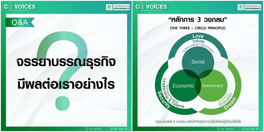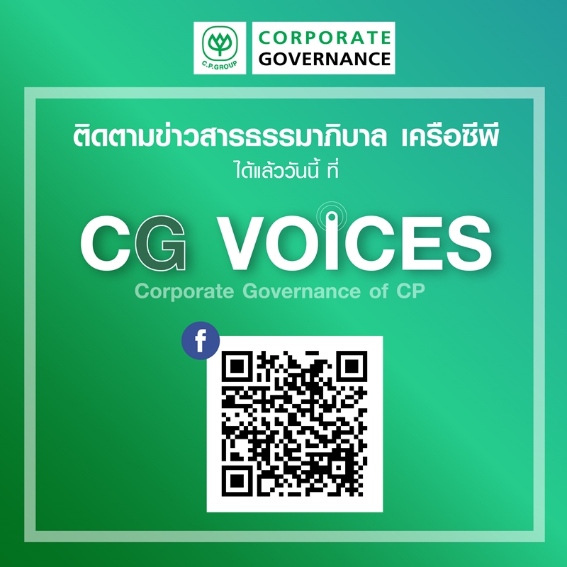 We Are CP ขอเชิญชวนชาวซีพีทุกท่านมาเรียนรู้หลักการบรรษัทภิบาลทั้ง 11 ประการ จรรยาบรรณธุรกิจเครือเจริญโภคภัณฑ์ (Code of Conduct) พร้อมนโยบายและแนวปฏิบัติเครือเจริญโภคภัณฑ์ ติดตามข่าวสารธรรมาภิบาลของเครือฯ รวมถึงแลกเปลี่ยนความคิดเห็นอย่างสร้างสรรค์ ได้ที่ Facebook page: CG Voices