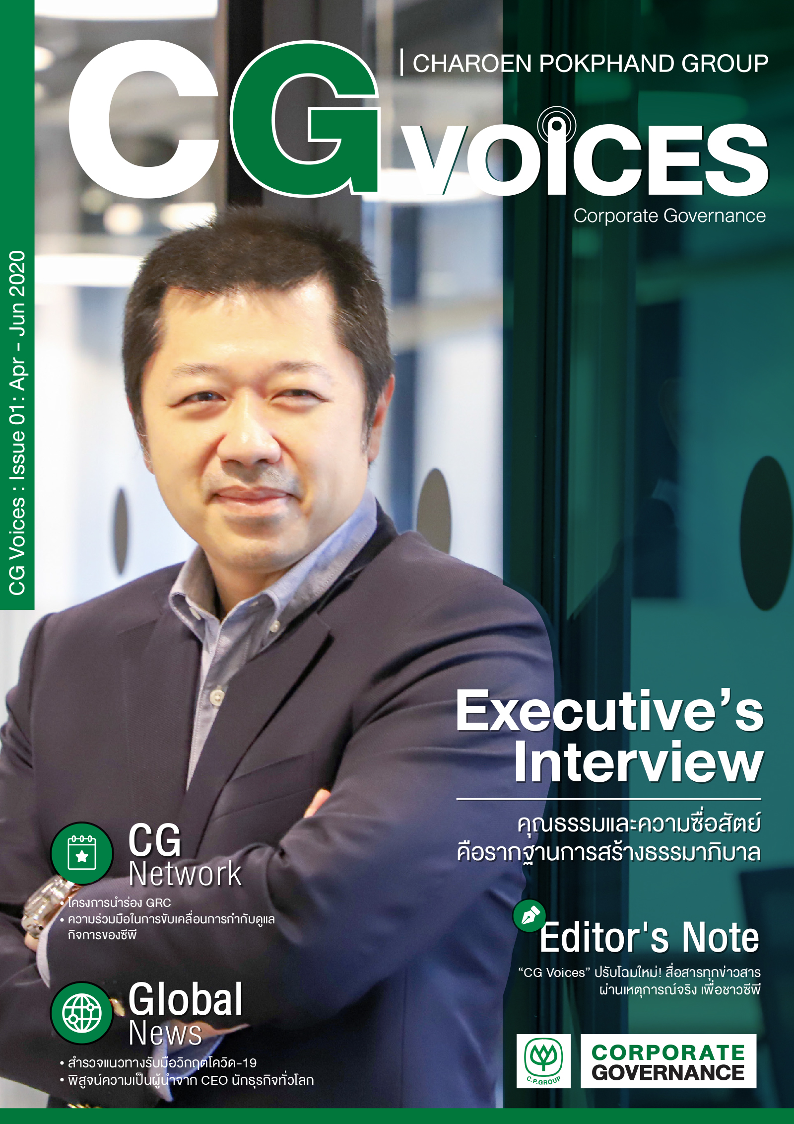 สำหรับ CG Voice Issue 01 ในคอลัมน์ Executive’s Interview ได้นำเสนอมุมมอง “คุณศุภชัย เจียรวนนท์” กับทิศทางการกำกับดูแลกิจการที่ดีของเครือเจริญโภคภัณฑ์ เป็น CEO Voice ที่ต้อนรับการเปิดตัวนิตยสารฉบับเต็มครั้งนี้