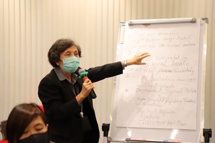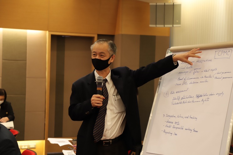 พร้อมกันนี้กลุ่มผู้บริหารระดับสูง ยังได้ร่วมการประชุมเชิงปฏิบัติการเพื่อระดมสมองอย่างสร้างสรรค์ ระบุแนวทางการสร้างการรับรู้ถึงความสำคัญของสิทธิมนุษยชนกับธุรกิจ และการปฏิบัติด้านแรงงาน รวมถึงกระบวนการเยียวยาผลกระทบ และบทบาทหน้าที่ของผู้บริหารในการขับเคลื่อนนโยบาย