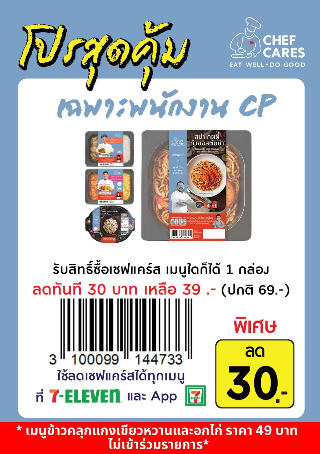 “เชฟแคร์ส” ขยายเวลาโปรลับ! สำหรับครอบครัว CP-CPF มอบของขวัญพิเศษ คูปองส่วนลด 30 บาท 11 พฤศจิกายน 2565SystemNews, กิจกรรมเพื่อสังคม อร่อยพรีเมียม สุขภาพดีทุกเมนู จากท็อปเชฟของไทย สุดคุ้ม! เพียง 39 บาท (จากปกติ 69 บาท) กำไร 100% จากการขายอาหารพร้อมทานทุกกล่อง มอบกลับคืนสู่สังคม หาซื้อได้แล้วที่>> 7-Eleven ทุกสาขาทั่วประเทศ โดยนำ Barcode นี้ไปแสดงที่ร้านหรือ App 7-11 ใช้ได้ทุกเมนูของเชฟแคร์ส ตั้งแต่วันนี้ – 15 พ.ย. 65 หรือจนกว่าคูปองจะหมด #ChefCares #เชฟแคร์ส #แคร์ทุกคำแคร์ทุกคน Post Views: 771
