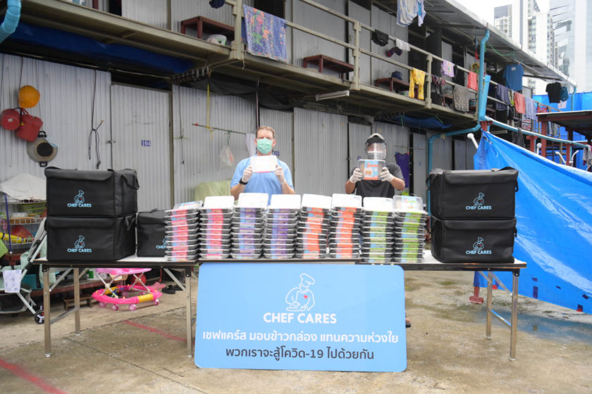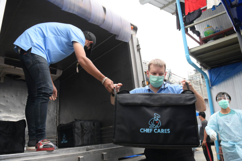 ทั้งนี้ เมื่อวันที่ 15 กรกฎาคมที่ผ่านมา คุณแมทธิว มาร์ติน อาสาสมัครมูลนิธิเชฟแคร์ส ได้เป็นตัวแทนมูลนิธิส่งมอบผลิตภัณฑ์อาหารสุขภาพ “เชฟแคร์ส เรดดี้มีล” เพื่อแทนคำขอบคุณแก่ทีมแพทย์ พยาบาล และบุคลากรทางการแพทย์ ในการปฏิบัติภารกิจบริการตรวจคัดกรองโควิด-19 เชิงรุก ณ บริเวณการกีฬาแห่งประเทศไทย หัวหมาก โดยอาหารทั้งหมดเป็นอาหารจากเชฟฝีมือระดับโลก 4 เมนู ได้แก่ หมูครีมซอสและมักกะโรนี สปาเกตตี้ซอสเขียวหวานและอกไก่ แกงป่าปลาข้าวไรซ์เบอร์รี่ และไก่ทิกก้ามาซาล่ากับข้าวหุงขมิ้น นอกจากนี้ ยังได้เดินทางไปมอบอาหารพร้อมทาน “เชฟแคร์ส เรดดี้มีล” ให้แก่ แคมป์คนงานก่อสร้าง ที่ถูกล็อกดาวน์ เพื่อบรรเทาความเดือดร้อน ณ แคมป์ก่อสร้างบริเวณซอยสุขุมวิท 36