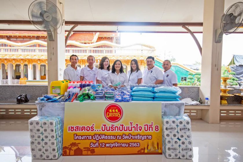 “ล่าสุด ได้นำผู้บริหารและพนักงานไปช่วยกันพัฒนาปรับปรุงภูมิทัศน์ และทำความสะอาดศาสนสถาน โดยมีเป้าหมาย สืบสานหน้าที่ของพุทธศาสนิกชนที่ดี ด้วยการทำนุบำรุงพระพุทธศาสนา พร้อมทั้งนำเงินบริจาคจากลูกค้าที่ผ่านกล่องรับบริจาคในร้านเชสเตอร์กว่า 200 สาขาทั่วประเทศ ร่วมสมทบทุนจัดซื้อสิ่งของอุปโภค บริโภค เพื่อถวายวัด สำหรับพระสงฆ์และผู้มาปฏิบัติธรรม ณ วัดป่าเจริญราช อ.ลำลูกกา จ.ปทุมธานี” คุณรุ่งทิพย์ กล่าว