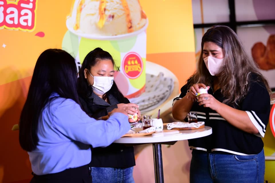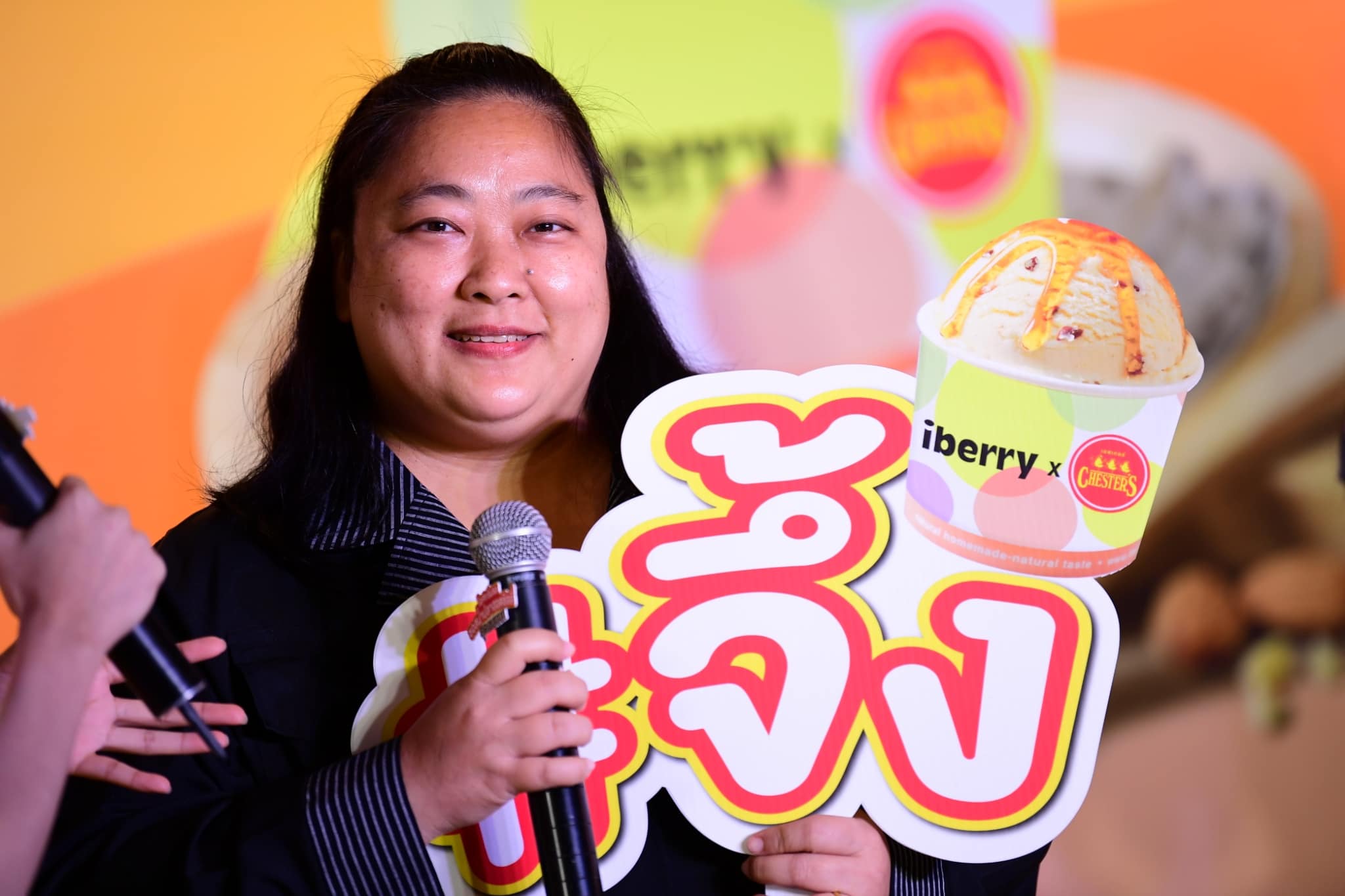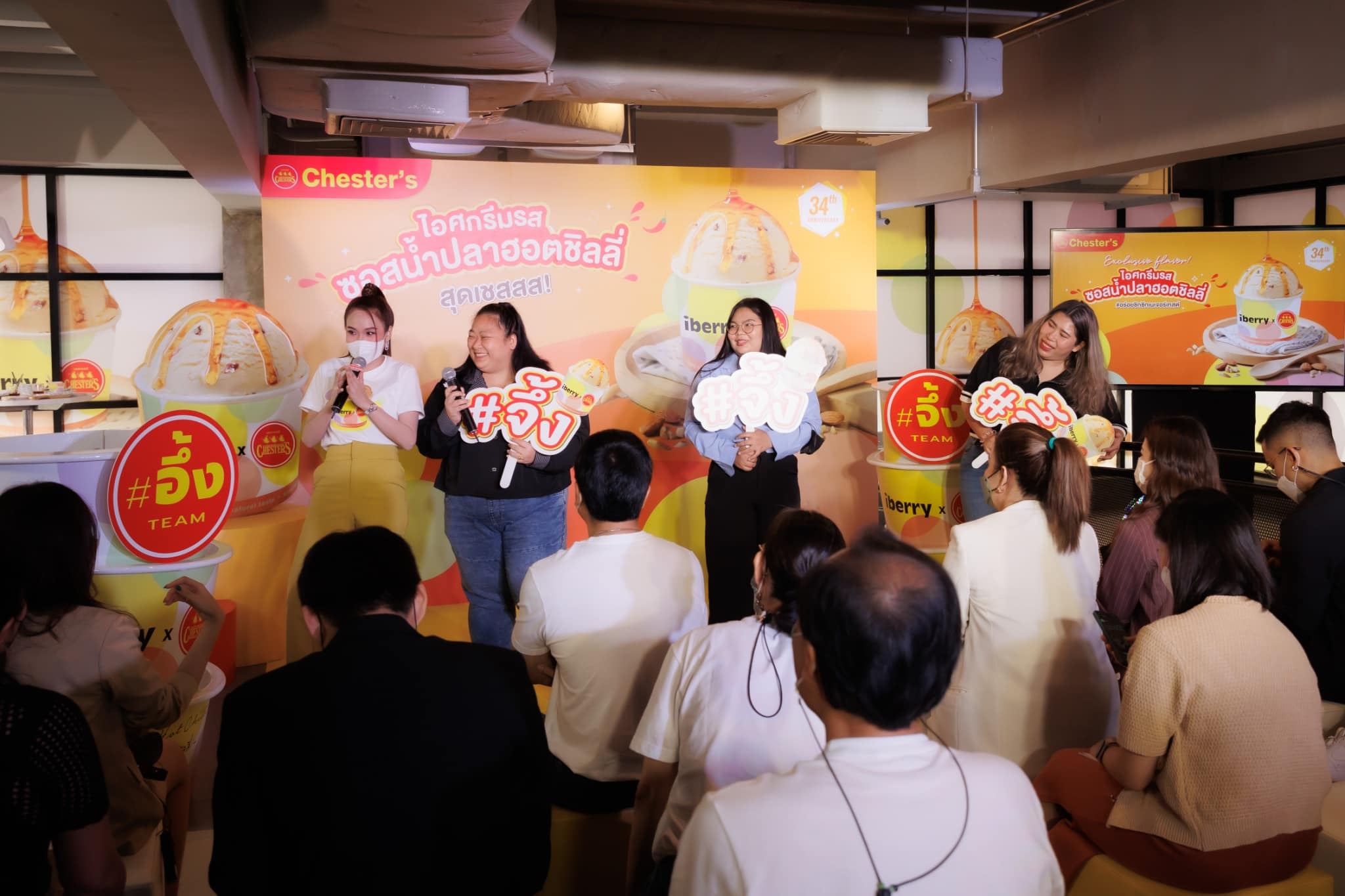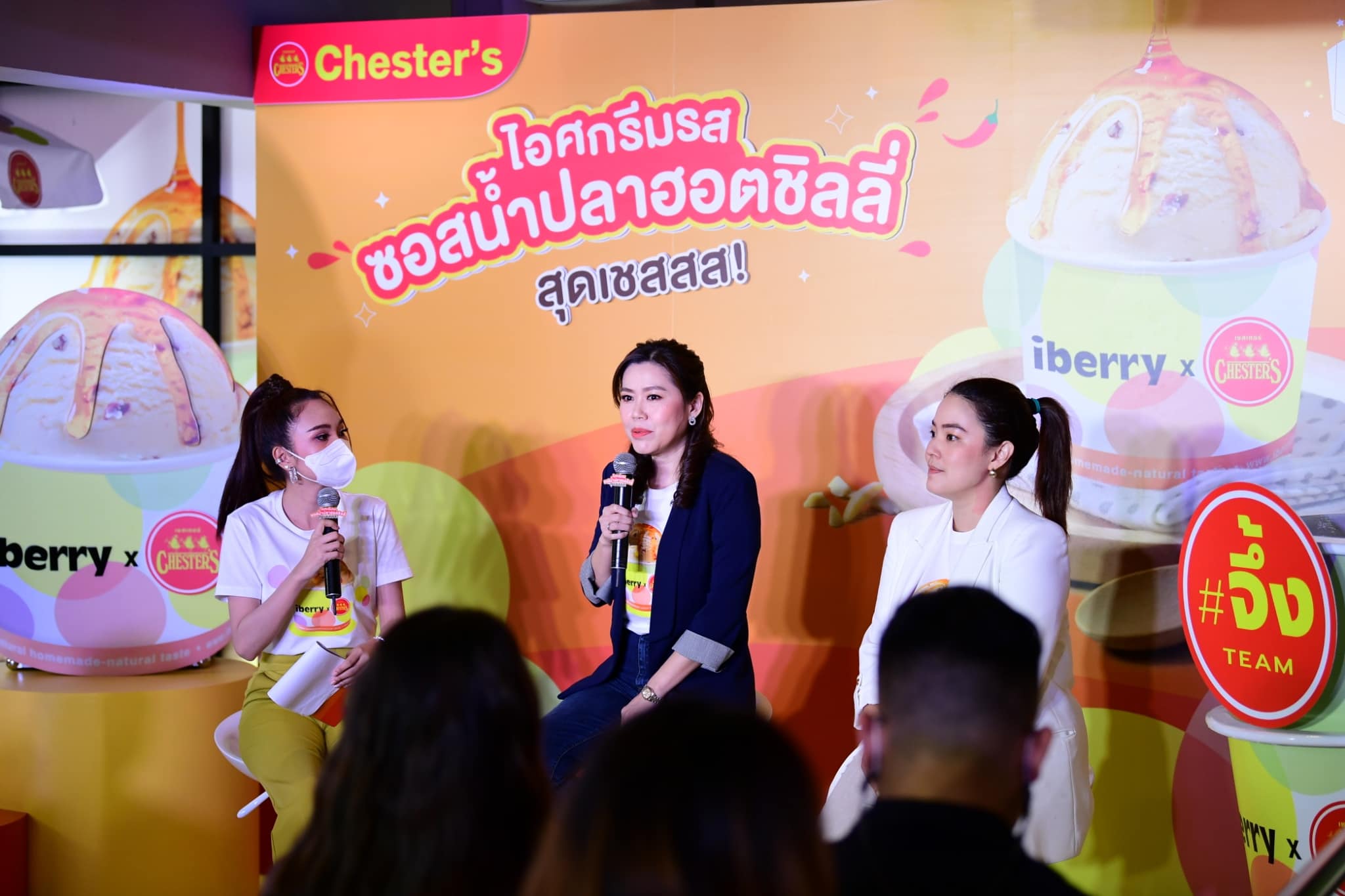 คุณลลนา บุญงามศรี กรรมการผู้จัดการ เชสเตอร์ ฟู้ด ธุรกิจร้านอาหารฟาสต์ฟู้ด ภายใต้แบรนด์ Chester’s ในเครือ CPF พร้อมด้วย คุณภาภัส สมิทธิกุล จาก iberry ร่วมฉลองครบรอบ 34 ปี เปิดตัวเมนูสุดเอ็กซ์คลูซีฟ “ไอศกรีมรสซอสน้ำปลาฮอตชิลลี่” ที่ได้แรงบันดาลใจจากเมนูซิกเนเจอร์ยอดนิยมอย่าง ไก่ย่างสูตรเผ็ดและข้าวไก่กรอบซอสน้ำปลา มารังสรรค์เป็นของหวาน แบบอร่อยจึ้ง สุดเชสสส! ร่วมกับแบรนด์ iberry ที่มีความเชี่ยวชาญด้านไอศกรีม มาร่วมพัฒนาสูตรด้วยวัตถุดิบคุณภาพดี อร่อยกลมกล่อมคงความเป็นเอกลักษณ์ของเชสเตอร์ด้วยซอสน้ำปลา แทรกความเผ็ดแซ่บเล็กๆ พร้อมเมล็ดอัลมอนด์เพิ่มความเพลิดเพลินเข้ากันอย่างลงตัว