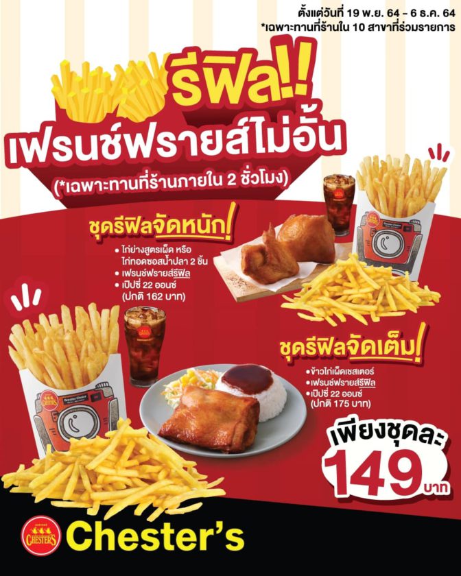 ครั้งแรก ‘รีฟิล เฟรนช์ฟรายส์ ไม่อั้น’ จาก Chester’s ประเดิม 10 สาขา จัดเต็มความอร่อยแบบจุใจ 2 ชั่วโมงเต็ม 22 พฤศจิกายน 2564SystemNews, กิจกรรมเพื่อสังคม, ข่าวธุรกิจ โปรพิเศษ!!! ต้อนรับกลับมาทานที่ร้าน เอาใจสายบุฟเฟ่ต์ กับ 2 ชุดรีฟิลจัดหนักจัดเต็ม อร่อยฟินจุใจ เติมได้ไม่อั้น ภายใน 2 ชั่วโมง (เฉพาะที่ร้านเชสเตอร์สาขาที่ร่วมรายการเท่านั้น) ชุดรีฟิลจัดหนัก! ไก่ย่างสูตรเผ็ด หรือ ไก่ทอดซอสน้ำปลา 2 ชิ้น + เฟรนช์ฟรายส์รีฟิล + เป๊ปซี่ 22 ออนซ์ >> ราคาพิเศษ 149.- (ปกติ 162.-) ชุดรีฟิลจัดเต็ม! ข้าวไก่เผ็ดเชสเตอร์ + เฟรนช์ฟรายส์รีฟิล + เป๊ปซี่ 22 ออนซ์ >> ราคาพิเศษ 149.- (ปกติ 175.-) ตั้งแต่วันนี้ – 6 ธ.ค. 64 เฉพาะทานที่ร้าน 10 สาขาที่ร่วมรายการ ได้แก่ สยามสแควร์, เดอะมอลล์ งามวงศ์วาน, เดอะมอลล์ บางแค, ซีคอน บางแค, แฟชั่น ไอส์แลนด์, ซี.พี. ทาวเวอร์ 1 สีลม, อิมพีเรียลเวิลด์ สำโรง, บิ๊กซี พระราม 2, บิ๊กซี บางพลี และเดอะมอลล์โคราช #Chesters #เชสเตอร์ #รีฟิลเฟรนช์ฟรายส์ #เชสเตอร์ผู้นำเมนูไก่ย่าง #โปรเด็ดโปรโดนที่เชสเตอร์เท่านั้น Post Views: 1,376