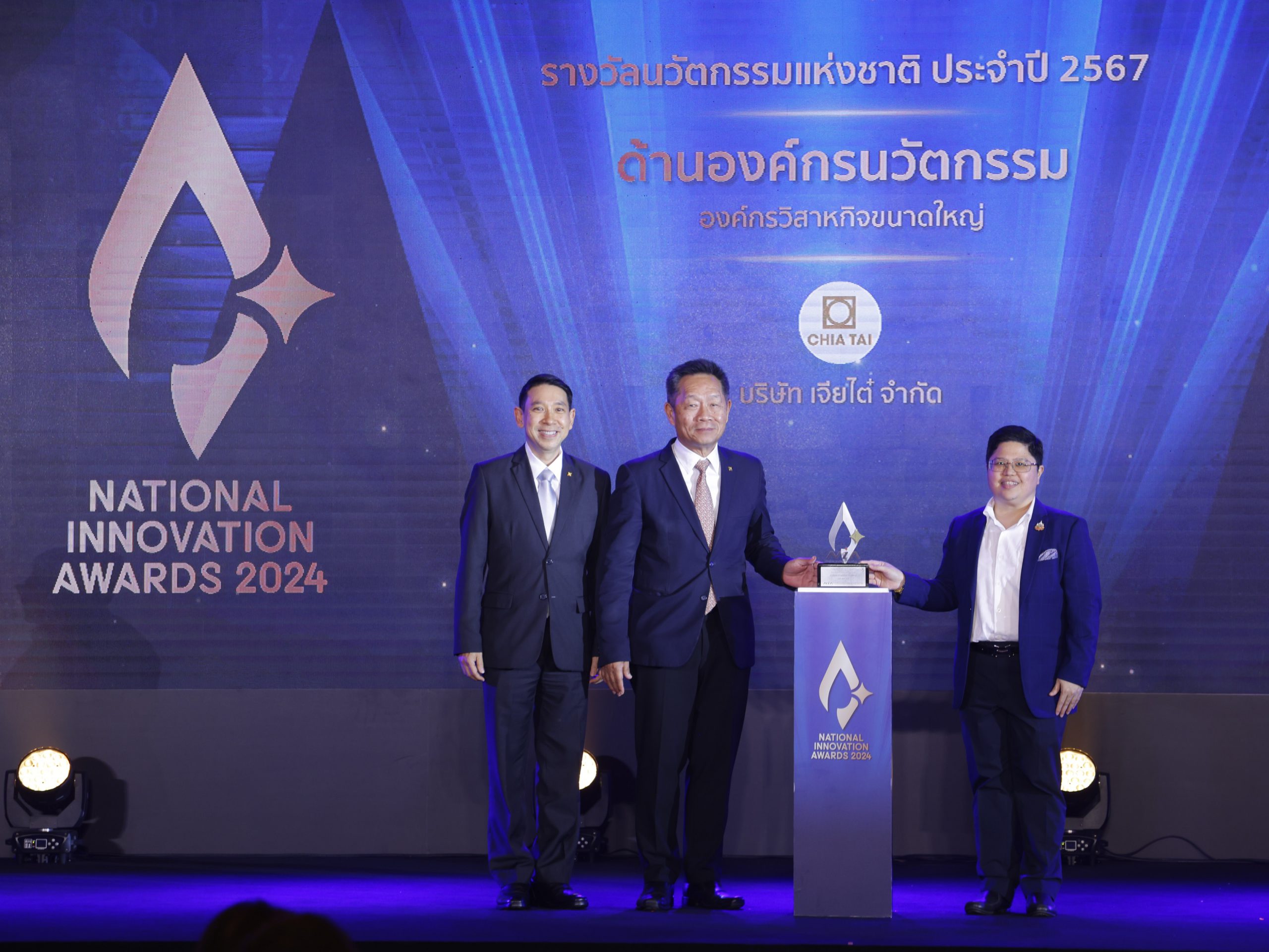 รางวัลนวัตกรรมแห่งชาติ ด้านองค์กรนวัตกรรมนี้ มอบให้กับองค์กรที่นำนวัตกรรมมาปรับใช้ ตั้งแต่ยุทธศาสตร์ กระบวนการ ถึงระดับโครงสร้างพื้นฐานการทำงาน สำหรับเจียไต๋ได้ยึดถือเรื่องการสร้างสรรค์นวัตกรรมเป็นหลักในการปฏิบัติงานและเป็นหนึ่งในสี่ค่านิยมหลักขององค์กร และด้วยวิสัยทัศน์ของเจียไต๋ในศตวรรษใหม่นี้ ได้มุ่งเป้าหมายในการส่งมอบโซลูชันทางการเกษตรเพื่อปลดล็อกความท้าทายต่างๆ ที่เกษตรไทยเผชิญอยู่ และเพื่อยกระดับเกษตรไทยสู่เกษตรยุคใหม่หรือสมาร์ทฟาร์มมิ่งที่ขับเคลื่อนด้วยเทคโนโลยี ซึ่งนอกจากช่วยเพิ่มประสิทธิภาพในการเพาะปลูกแล้ว ยังช่วยแก้ไขปัญหาเรื่องการขาดแคลนแรงงานภาคเกษตร เพราะเทคโนโลยีเกษตรสามารถช่วยประหยัดแรงงาน ประหยัดเวลา อีกทั้ง ช่วยให้เกิดเกษตรแม่นยำซึ่งสอดคล้องกับเจตนารมณ์ของเจียไต๋ในการยกระดับคุณภาพชีวิตของผู้คนให้ดีขึ้นอย่างยั่งยืน ผ่านการส่งมอบนวัตกรรมการเกษตรด้วยผลิตภัณฑ์ และบริการที่มีคุณภาพ