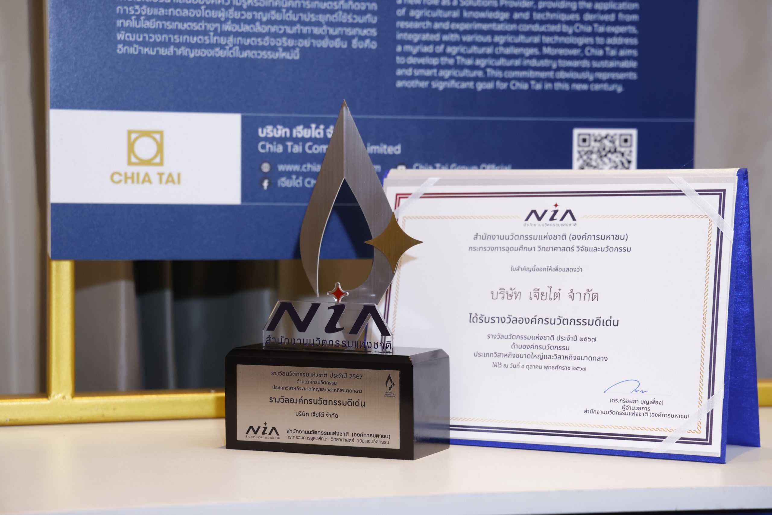 กรุงเทพฯ 7 ตุลาคม 2567 – เมื่อเร็วๆ นี้ บริษัท เจียไต๋ จำกัด ผู้นำธุรกิจนวัตกรรมการเกษตรของไทย นำโดยคุณมนัส เจียรวนนท์ ประธานคณะผู้บริหาร พร้อมด้วยคุณประวินทร์ คุโรวาท ประธานบริหารด้านการเงินและบริหารกลาง ขึ้นรับรางวัลอันทรงเกียรติ รางวัลนวัตกรรมแห่งชาติ ด้านองค์กรนวัตกรรม ประจำปี 2567 จาก ดร.กริชผกา บุญเฟื่อง ผู้อำนวยการสำนักงานนวัตกรรมแห่งชาติ (องค์การมหาชน) ภายในงานวันนวัตกรรมแห่งชาติ จัดโดยสำนักงานนวัตกรรมแห่งชาติ (องค์การมหาชน) ซึ่งรางวัลนี้ได้ตอกย้ำจุดยืนของเจียไต๋ในการเป็นองค์กรที่นำเทคโนโลยีและนวัตกรรมการเกษตรต่าง ๆ มาใช้เพื่อยกระดับวงการเกษตรของไทย ณ ห้องฉัตราบอลรูม โรงแรมสยาม เคมปินสกี้