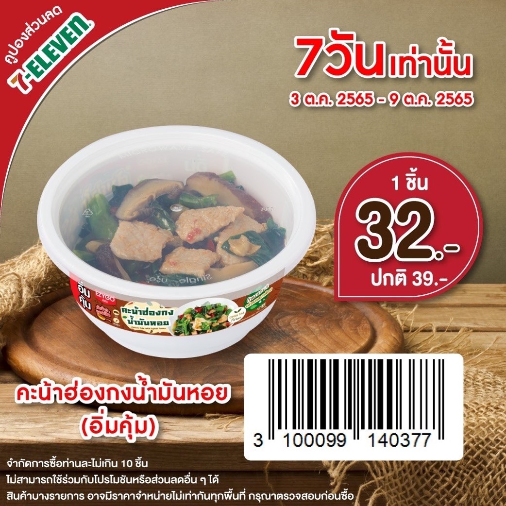 อิ่มอร่อยกับเมนูจากคะน้าฮ่องกงโอเชี่ยนจากเจียไต๋ฟาร์มในราคาพิเศษ เพียงแสดงคูปองนี้ที่เคาน์เตอร์ชำระเงิน หรือแนบคูปองเมื่อกดสั่งซื้อผ่าน 7DELIVERY