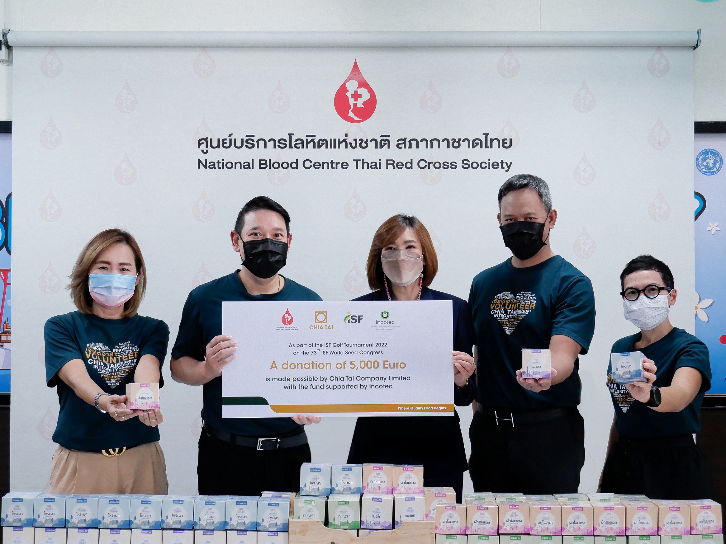 กรุงเทพฯ 6 กรกฎาคม 2565 – จากการเข้าร่วมงานประชุมใหญ่ระดับนานาชาติ ISF World Seed Congress 2022 ซึ่งจัดขึ้นที่ประเทศสเปน และได้ชนะการแข่งขันกอล์ฟการกุศลซึ่งจัดขึ้นระหว่างผู้บริหารที่เข้าร่วมในงานดังกล่าว คณะผู้บริหารบริษัท เจียไต๋ จำกัด ผู้นำธุรกิจนวัตกรรมการเกษตรของไทย นำโดยคุณประวินทร์ คุโรวาท ประธานบริหารด้านการเงินและบริหารกลาง ดร. วัลลภัช แก้วอำไพ ประธานบริหารด้านกลยุทธ์องค์กร นางสาวดวงพร จิราพิพัฒนชัย ผู้จัดการทั่วไป ฝ่ายการค้า ธุรกิจเมล็ดพันธุ์ และคุณอณิมา ทัศจันทร์ ผู้จัดการทั่วไป ฝ่ายสื่อสารองค์กร นำเงินรางวัลจากการแข่งขันมูลค่า 5,000 ยูโร มอบให้แก่สภากาชาดไทย โดยมีคุณปิยนันท์ คุ้มครอง ผู้ช่วยผู้อำนวยการด้านการจัดหาโลหิตและสื่อสารองค์กร ศูนย์บริการโลหิตแห่งชาติ สภากาชาดไทย เป็นผู้รับมอบ