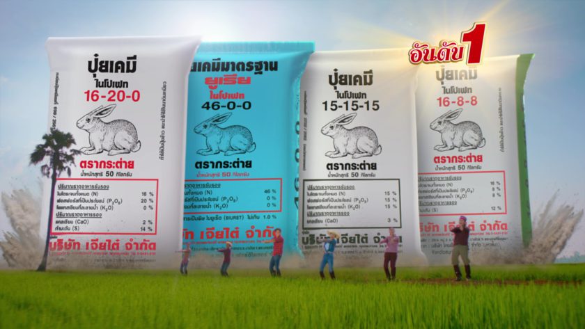 ตอกย้ำความเป็นผู้นำในตลาดปุ๋ยเคมีที่อยู่คู่เกษตรกรไทยอย่างยาวนาน ปุ๋ยตรากระต่ายกลับมาอีกครั้งกับภาพยนตร์โฆษณาชุด “ติดใจปุ๋ยตรากระต่าย” โดยนำเพลงฮิตของนักร้องขวัญใจชาวไทยอย่างเพลง “คุณลำไย” โดยคุณลูกนก สุภาพร มาเรียบเรียงเนื้อร้องใหม่ นำเสนอถึงความมั่นใจในคุณภาพและประสิทธิภาพของปุ๋ยตรากระต่าย อีกทั้งตอกย้ำความเป็นอันดับหนึ่งที่เกษตรกรให้การยอมรับเพราะได้ผลิตผลดี มีคุณภาพ จนอยากจะร้อง เล่น และเต้นตาม ชนิดที่ว่าเกษตรกรติดตะละริดติดใจ ต้องยกให้ปุ๋ยตรากระต่ายเป็นอันดับหนึ่ง