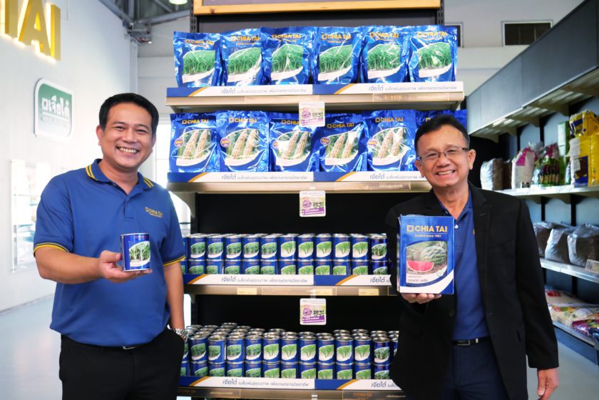 (ซ้าย) คุณวโรนนท์ ดวงสุวรรณ ผู้จัดการทั่วไปฝ่ายบริหารผลิตภัณฑ์ ธุรกิจเมล็ดพันธุ์ และ (ขวา) คุณบุญมี ออกแมน รองกรรมการผู้จัดการ ธุรกิจเมล็ดพันธุ์ บริษัท เจียไต๋ จำกัด
