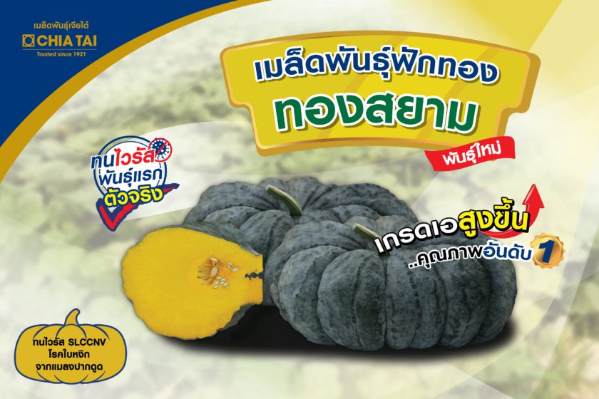 สำหรับปีนี้ เราได้เปิดตัว “ฟักทอง ทองสยาม” ฟักทองสายพันธุ์ใหม่ที่ทนไวรัส SLCCNV ที่เป็นสาเหตุของโรคใบหงิกในฟักทอง ซึ่งเจียไต๋สามารถพัฒนาได้สำเร็จเป็นสายพันธุ์แรกในไทย นับว่าเป็นความภาคภูมิใจของชาวเจียไต๋ทุกคนที่จะส่งมอบเมล็ดพันธุ์คุณภาพสู่เกษตรกร”