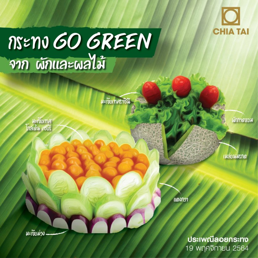 เพื่อร่วมกันรักษ์โลกและรักษ์ประเพณีไปพร้อมๆ กัน ลอยกระทงปีนี้ บริษัท เจียไต๋ จำกัด ผู้นำธุรกิจนวัตกรรมการเกษตรของไทย ขอแชร์ไอเดียการทำกระทง Go Green ด้วยวัสดุธรรมชาติจากในครัวของเราเองอย่างผักและผลไม้ มาลองดัดแปลงของใกล้ตัวที่หลายคนมองข้ามเป็นกระทงรักษ์โลกสีสันสดใส เพื่อที่จะลอยกระทงได้อย่างสบายใจ และไม่สร้างผลกระทบให้สิ่งแวดล้อมเพิ่มเติม