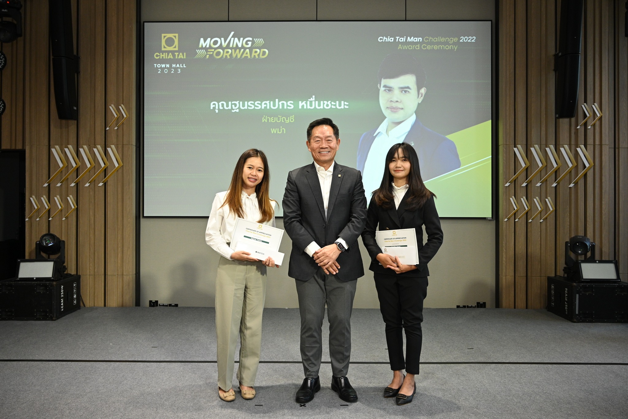 นอกจากนี้ เจียไต๋ยังมอบรางวัลให้กับพนักงานเจียไต๋แมนผู้ปฏิบัติตนเป็นแบบอย่างที่ดีในการส่งเสริมวัฒนธรรมองค์กร และยึดมั่นในค่านิยมของเจียไต๋ทั้ง 4 ประการ อันได้แก่ Integrity Innovation Partnership Passion จาก 2 โครงการที่จัดขึ้นเมื่อปีที่ผ่านมา ได้แก่ โครงการ Chia Tai Man Challenge และ โครงการ Chia Tai Star Award – Stars of the Year ก่อนจะปิดท้ายงาน Chia Tai Town Hall 2023 ในครั้งนี้ด้วยพลังคำมั่นสัญญาจากพนักงานเจียไต๋ทุกท่าน ที่จะขับเคลื่อนให้เจียไต๋เติบโตและเดินหน้าสู่ความสำเร็จไปด้วยกัน