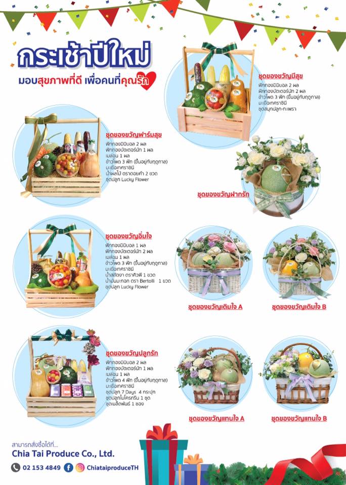 เจียไต๋ชวนส่งความรักความห่วงใยให้คนสำคัญในช่วงเทศกาลปีใหม่ 2563 ด้วยคอลเล็คชั่นกระเช้าปีใหม่ดีไซน์สวยงามเพื่อสุขภาพของคนที่คุณรัก โดยบรรจงคัดสรรจากผลิตผลที่ผ่านการคัดเลือกเมล็ดพันธุ์อย่างพิถีพิถัน นำมาปลูกและดูแลด้วยเทคโนโลยีการเกษตรอันทันสมัยของเจียไต๋ สู่ผลิตผลผักผลไม้สายพันธุ์ดี รสอร่อย ปลอดภัย และสดใหม่ส่งตรงจากฟาร์ม ซึ่งเป็นความตั้งใจของเจียไต๋ในการส่งต่อนวัตกรรมการเกษตรเพื่อคุณภาพชีวิตที่ดีกว่าอย่างยั่งยืนถึงมือผู้บริโภค