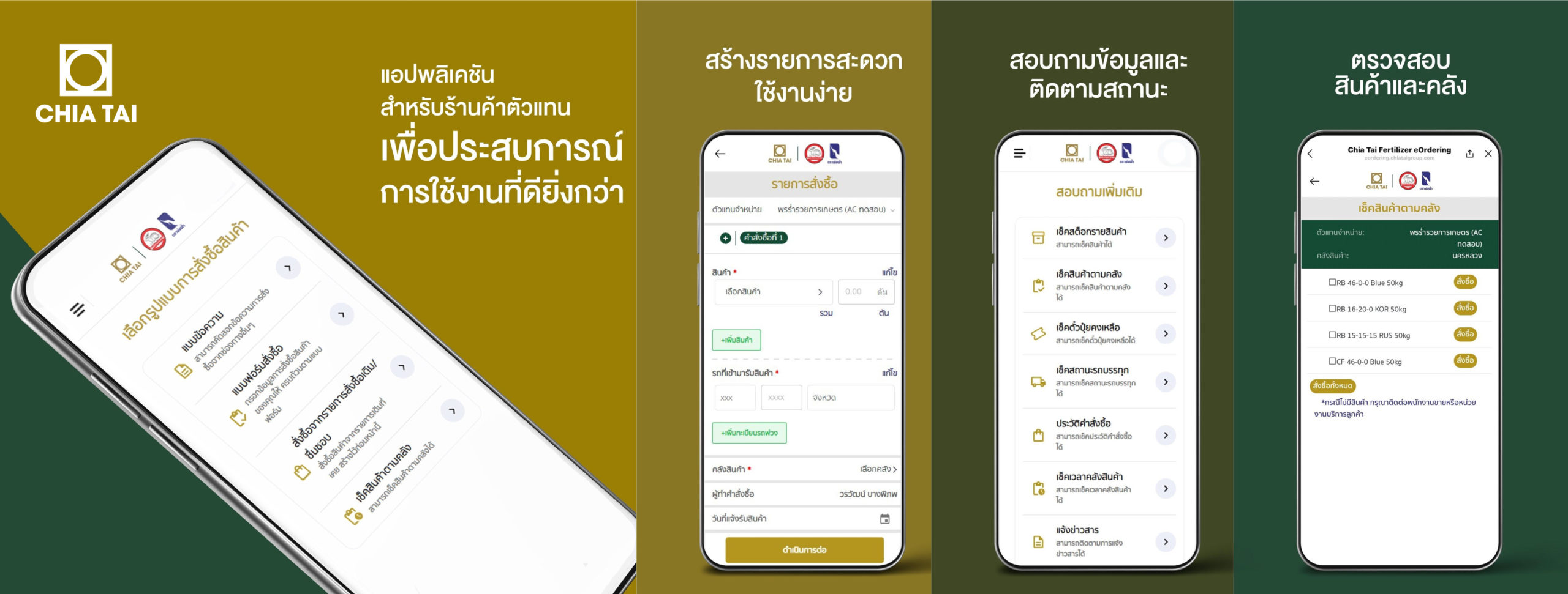 โดยแอปพลิเคชั่น eOrdering นี้ เจียไต๋พัฒนาขึ้นจากความตั้งใจที่จะยกระดับการบริการของเราให้ตอบโจทย์ความต้องการของลูกค้ายิ่งขึ้นผ่านเทคโนโลยีอัจริยะ จึงเกิดเป็นบริการดิจิทัลเพื่ออำนวยความสะดวกให้กับร้านค้าตัวแทนจำหน่ายของเจียไต๋ เพื่อแก้ไขปัญหาในขั้นตอนการสั่งซื้อและการตรวจสอบข้อมูลให้เป็นไปอย่างรวดเร็ว แม่นยำ และสะดวกสบายมากยิ่งขึ้น โดยมี 3 ฟีเจอร์สำคัญคือ การสั่งซื้อสินค้า การแก้ไขรายการสั่งซื้อสินค้า และการสอบถามข้อมูลต่างๆ เช่น  ตรวจสอบสินค้า ตรวจสอบสถานะรถบรรทุก ตรวจสอบประวัติคำสั่งซื้อ พร้อมให้ลูกค้าใช้งานได้ตลอดเวลา” นายไพโรจน์ กล่าวปิดท้าย