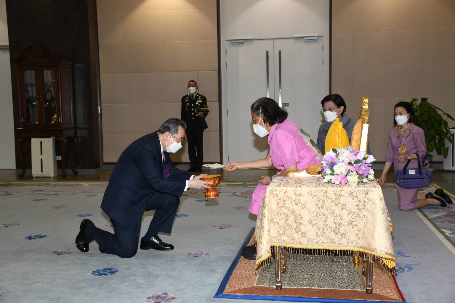 โอกาสนี้ พระบาทสมเด็จพระเจ้าอยู่หัว และสมเด็จพระนางเจ้าฯ พระบรมราชินี พระราชทานพระบรมราชวโรกาสให้ คุณเดช บุนนาค เลขาธิการสภากาชาดไทย นำผู้มีอุปการคุณและและผู้บริจาคสมทบทุนการก่อสร้างอาคารจักรีทศมรามาธิบดินทร์ เฝ้าทูลละอองธุลีพระบาท รับพระราชทานของที่ระลึก ในการนี้ท่านประธานอาวุโสธนินท์ เจียรวนนท์ พร้อมด้วยท่านประธานกรรมการสุภกิต เจียรวนนท์ ร่วมเฝ้าทูลละอองธุลีพระบาทรับเสด็จ โดย ท่านประธานอาวุโสธนินท์ ได้เข้ารับพระราชทานของที่ระลึกจากพระบาทสมเด็จพระเจ้าอยู่หัว และสมเด็จพระนางเจ้าฯ พระบรมราชินี ซึ่งสะท้อนถึงพันธกิจของเครือเจริญโภคภัณฑ์ในการสนับสนุนการพัฒนาสังคมและยกระดับคุณภาพชีวิตของคนไทย
