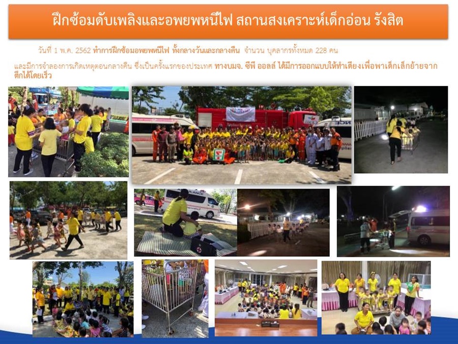 และฝึกซ้อมอพยพหนีไฟ ให้กับชุมชน กลุ่มเปราะบาง วัด และหน่วยงานราชการ