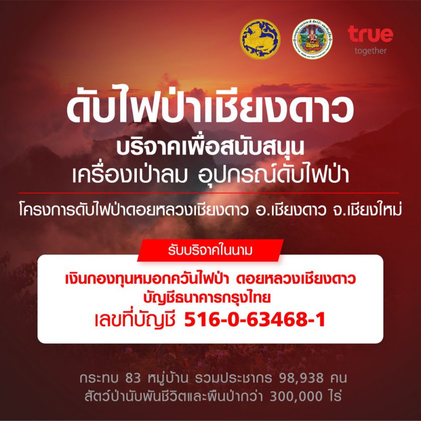 เราช่วยได้ เพียงร่วมสมทบทุนบริจาคเพื่อสนับสนุนซื้อเครื่องเป่าลม อุปกรณ์ดับไฟป่า เพียงคนละ 21 บาท เพื่อกองทุนหมอกควันไฟป่า ดอยหลวงเชียงดาว