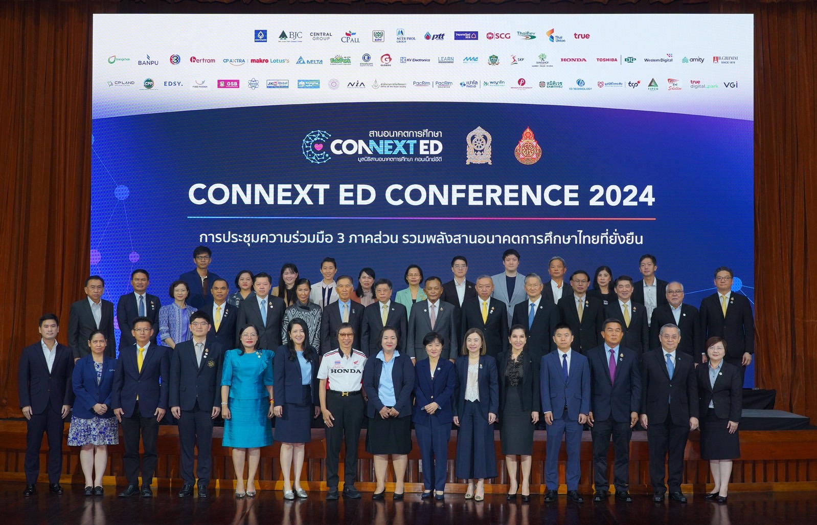 กรุงเทพฯ 15 พฤศจิกายน 2567 – ผนึกความร่วมมือ รวมพลังระดับประเทศ ต่อเนื่องเป็นปีที่ 8 มุ่งขับเคลื่อนการศึกษาไทยสู่ความยั่งยืน…มูลนิธิสานอนาคตการศึกษา คอนเน็กซ์อีดี นำโดย องคมนตรี พลเอก ดาว์พงษ์ รัตนสุวรรณ ในฐานะประธานที่ปรึกษากิตติมศักดิ์ จัดการประชุม “ความร่วมมือ 3 ภาคส่วน รวมพลังสานอนาคตการศึกษาไทยที่ยั่งยืน” ประจำปี 2567 ณ ห้องประชุมบุณยเกต หอประชุมคุรุสภา กระทรวงศึกษาธิการ โดยมีคณะที่ปรึกษาและผู้ทรงคุณวุฒิจากภาครัฐ โดย รัฐมนตรีว่าการกระทรวงศึกษาธิการ พลตำรวจเอก เพิ่มพูน ชิดชอบ ภาคประชาสังคม และภาคเอกชน โดย คุณศุภชัย เจียรวนนท์ ประธานคณะผู้บริหาร เครือเจริญโภคภัณฑ์ และประธานกรรมการ บมจ. ทรู คอร์ปอเรชั่น ในฐานะประธานคณะกรรมการบริหารมูลนิธิฯ พร้อมด้วยซีอีโอ คณะผู้บริหารจากองค์กรผู้ร่วมก่อตั้ง อาทิ คุณชาติศิริ โสภณพนิช กรรมการผู้จัดการใหญ่ ธนาคารกรุงเทพ จำกัด (มหาชน) คุณฐาปน สิริวัฒนภักดี ประธานเจ้าหน้าที่บริหาร บมจ. ไทยเบฟเวอเรจ คุณอาทิตย์ นันทวิทยา ประธานเจ้าหน้าที่บริหาร บมจ. เอสซีบี เอกซ์ คุณอัศวิน เตชะเจริญวิกุล ประธานเจ้าหน้าที่บริหารและกรรมผู้จัดการใหม่ บมจ. เบอร์ลี่ ยุคเกอร์ คุณประสิทธิ์ บุญดวงประเสริฐ ประธานคณะผู้บริหาร บมจ. เจริญโภคภัณฑ์อาหาร คุณยุทธศักดิ์ ภูมิสุรกุล ประธานเจ้าหน้าที่บริหาร บมจ. ซีพี ออลล์ คุณณัฐวุฒิ อมรวิวัฒน์ ประธานกรรมการ บริษัท ทรูดิจิทัล กรุ๊ป จำกัด และคุณมนัสส์ มานะวุฒิเวช ประธานเจ้าหน้าที่บริหาร บมจ. ทรู คอร์ปอเรชั่น ตลอดจนเครือข่ายพันธมิตร 55 องค์กร ร่วมกันแลกเปลี่ยนความคิดเห็น หารือและวางแผนการดำเนินงานในระยะต่อไป อันได้แก่ การใช้ระบบ School Management System ครอบคลุมทุกโรงเรียนในสังกัดสพฐ. เพื่อเพิ่มความโปร่งใสและประสิทธิภาพการบริหารจัดการ การระดมทุนในโครงการ “โน้ตบุ๊กเพื่อการศึกษา” ให้ครบตามเป้าหมาย 88 ล้านบาท อีกทั้งจัดตั้งศูนย์ Learning Center นำร่องในโรงเรียนคุณภาพทั่วประเทศ รวมถึงพัฒนาผู้นำด้านเทคโนโลยีเพื่อการศึกษา (ICT Talent) ให้ครอบคลุมทุกโรงเรียนในสังกัดสพฐ. ภายในปี 2570 ควบคู่กับการจัดหลักสูตรอบรมเพิ่มพูนทักษะการบริหารและการสอนร่วมกับสพฐ. และภาคส่วนที่เกี่ยวข้อง