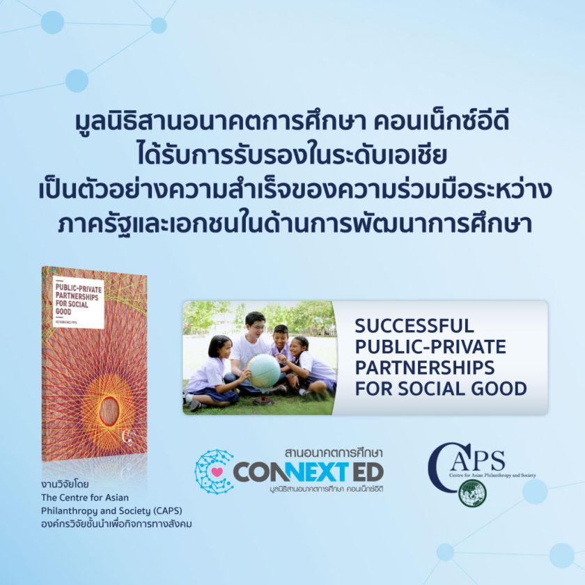 “ความร่วมมือระหว่างภาครัฐและเอกชนเพื่อกิจกรรมอันเป็นประโยชน์ต่อสังคม (Public-Private Partnerships for Social Good) ” จะช่วยยกระดับการทำงานของประเทศในแถบเอเชียให้เกิดความใกล้ชิดกับรัฐบาลมากยิ่งขึ้น และช่วยนำเอาศักยภาพขององค์กรเอกชนทั้งด้านทุน ความเชี่ยวชาญ และนวัตกรรมมาช่วยเหลือบริการทางสังคมที่จำเป็นได้ และหากความร่วมมือเป็นไปได้ดีจะส่งผลดีต่อทุกฝ่าย ซึ่งมูลนิธิสานอนาคตการศึกษา คอนเน็กซ์อีดี เป็นหนึ่งในตัวอย่างความสำเร็จที่เกิดขึ้นได้จริงจากการผนึกกำลังความร่วมมือทั้งภาครัฐ ภาคประชาสังคม และภาคเอกชน ที่ขยายความร่วมมือจาก 12 องค์กรผู้ก่อตั้ง สู่ 44 องค์กรเอกชนในปัจจุบัน มาร่วมกันยกระดับคุณภาพการศึกษาไทยให้ทั่วถึงและทัดเทียม พร้อมส่งเสริมศักยภาพเด็กไทยสู่การเป็นเด็กดีเด็กเก่ง