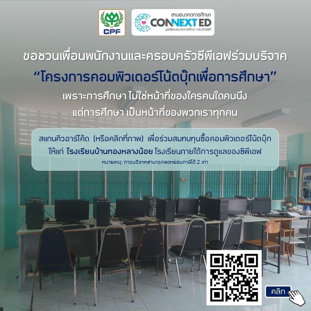 ชวนชาว CP-CPF ร่วมบริจาค “โครงการคอมพิวเตอร์โน้ตบุ๊กเพื่อการศึกษา” ให้น้องๆ รร.บ้านหลางน้อย จ.นครราชสีมา ภายใต้การดูแลของ CPF