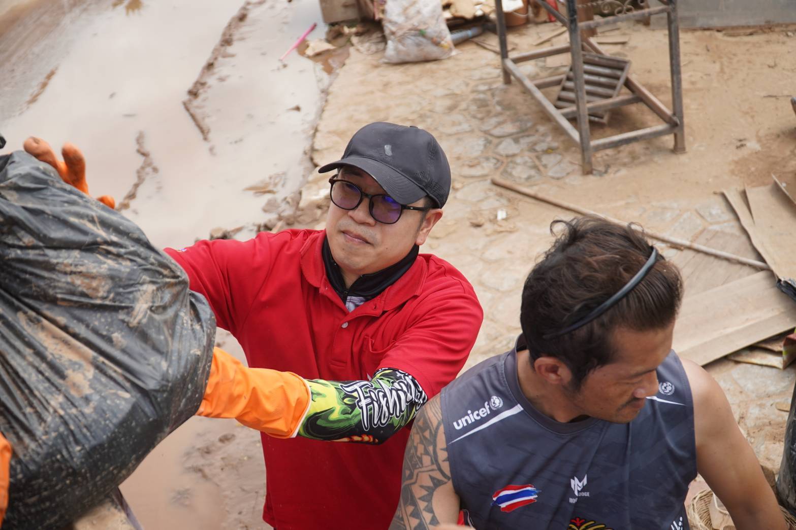 แม้ระดับน้ำจะลดลงแล้ว แต่หลายชุมชนยังคงต้องการการฟื้นฟูอย่างเร่งด่วน เครือซีพีจึงเดินหน้าสนับสนุนกิจกรรม Big Cleaning Day จ.น่าน โดยระดมทีม “ซีพีอาสา” ลงพื้นที่ร่วมกับเยาวชนจิตอาสาจากโรงเรียนน่านคริสเตียนศึกษา เข้าช่วยเก็บขยะ ทำความสะอาดพื้นที่สาธารณะ พร้อมจัดรถน้ำสะอาด รถขนขยะ และแจกไม้กวาดทางมะพร้าวจำนวน 1,000 ด้าม ให้ครัวเรือนที่ขาดแคลนอุปกรณ์ทำความสะอาด เพื่อช่วยให้ชุมชนกลับมาสะอาดและน่าอยู่อีกครั้ง