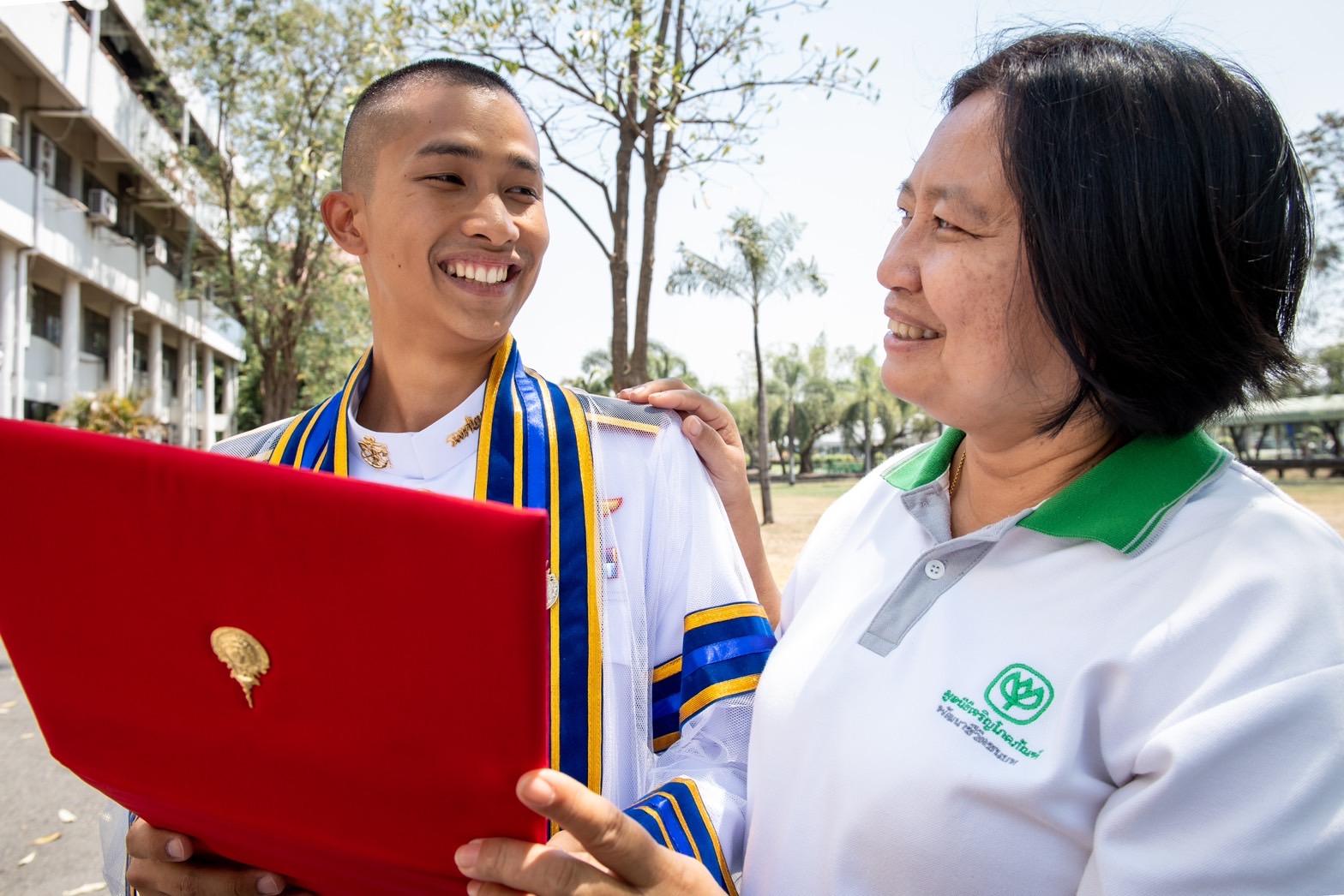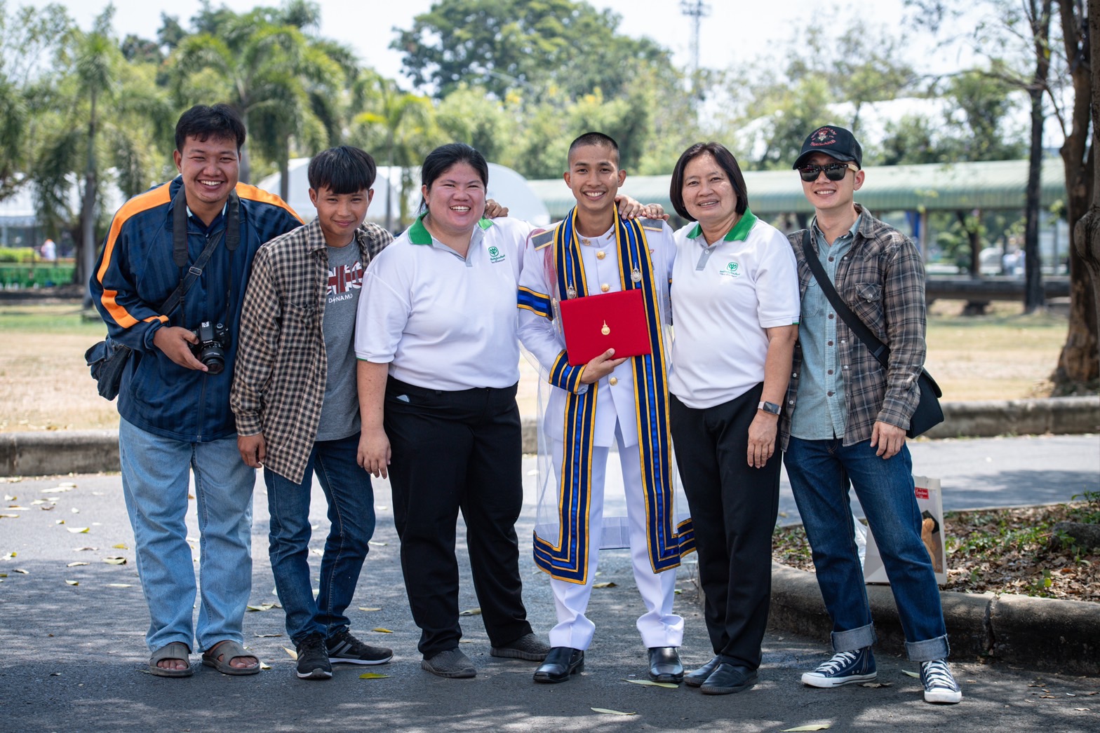 เมื่อเร็ว ๆ นี้ นักเรียนทุนฯ โครงการสนับสนุนทุนการศึกษานักเรียนในพระราชานุเคราะห์ รุ่นที่ 7 “น้องจูน” สิบโทวชากร รุจิภัคโชติกุล เข้ารับมอบปริญญาบัตรจากมหาวิทยาลัยเทคโนโลยีราชมงคลรัตนโกสินทร์ วิทยาเขตวังไกลกังวล คณะอุตสาหกรรมและเทคโนโลยี สาขาเทคโนโลยีวิศวกรรมคอมพิวเตอร์ สร้างความภาคภูมิใจแก่ครอบครัว และพี่ ๆ มูลนิธิฯ เป็นอย่างมาก