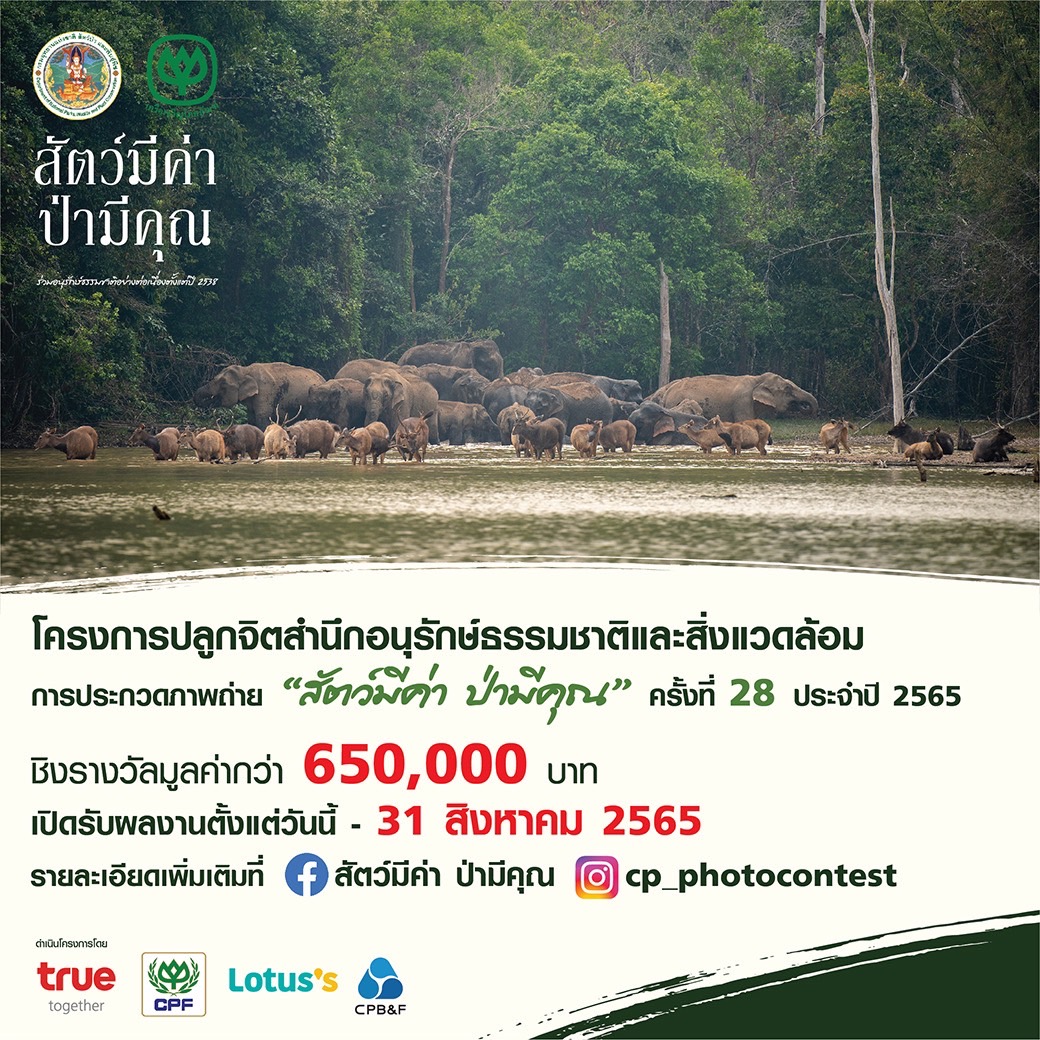 กรมอุทยานแห่งชาติ สัตว์ป่า และพันธุ์พืช และเครือเจริญโภคภัณฑ์ ขอเชิญช่างภาพผู้มีใจรักธรรมชาติ ส่งภาพถ่ายเข้าประกวดในโครงการปลูกจิตสำนึกอนุรักษ์ธรรมชาติและสิ่งแวดล้อม การประกวดภาพถ่าย ‘สัตว์มีค่า ป่ามีคุณ’ ครั้งที่ 28 ประจำปี 2565