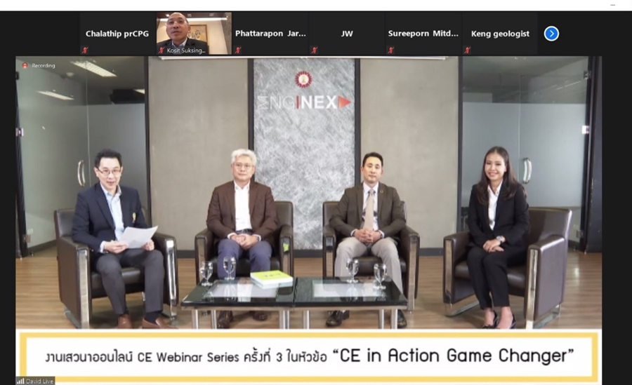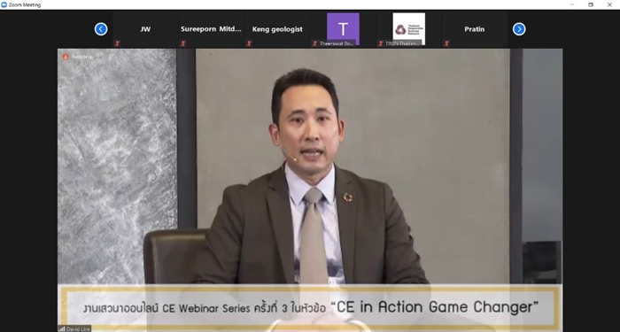 วันนี้ (7 ตุลาคม 2563) – เครือข่ายเพื่อความยั่งยืนแห่งประเทศไทย Thailand Responsible Business Network (TRBN) จัดสัมมนาออนไลน์ Circular Economy in Action : Game Changer เพื่อรับฟังมุมมองแนวคิดกลยุทธ์การดำเนินงานของภาคธุรกิจที่เป็นผู้นำในการขับเคลื่อนเศรษฐกิจหมุนเวียน โดยมี คุณนพปฎล เดชอุดม ประธานคณะผู้บริหารด้านความยั่งยืนองค์กร เครือเจริญโภคภัณฑ์ ดร.ชญาน์ จันทวสุ ผู้ช่วยกรรมการผู้จัดการใหญ่สายงานบริหารความยั่งยืน และภาพลักษณ์องค์กร บมจ.พีทีที โกลบอล เคมิคอล นายโฆษิต สุขสิงห์ รองกรรมการผู้อำนวยการใหญ่กลุ่มธุรกิจต่อเนื่อง บมจ.ไทยเบฟเวอเรจ น.ส.สุรัชนี ลิ่มอติบูลย์ ผู้ช่วยกรรมการผู้อำนวยการ บจก.กิมไป๊ ลามิทิวบ์ ร่วมเสวนา ดำเนินรายการโดย ศ.ดร.พิสุทธิ์ เพียรมนกุล รองคณบดีและอาจารย์ประจำภาควิชาวิศวกรรมสิ่งแวดล้อม คณะวิศวกรรมศาสตร์ จุฬาลงกรณ์มหาวิทยาลัย