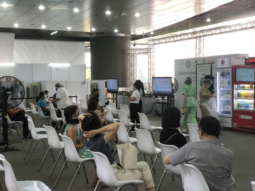 วันนี้ (9 มิย.) ซึ่งเป็นวันที่ 3  ของการเปิดหน่วยความร่วมมือบริการฉีดวัคซีนโควิด – 19 ที่ ทรู ดิจิทัล พาร์ค  บรรยากาศเป็นไปอย่างคึกคักมีประชาชนมารับบริการฉีดวัคซีนกันตั้งแต่ช่วงเช้า  และทะยอยมาตามรอบการนัดหมายอย่างต่อเนื่อง ประชาชนที่เข้ามารับบริการที่นี่ส่วนใหญ่ลงทะเบียนผ่านระบบไทยร่วมใจ ของกรุงเทพมหานคร รวมไปถึงกลุ่มบุคลากรครู อาจารย์ ที่ถือว่าเป็นกลุ่มเสี่ยง  และเป็นผู้ที่พักอาศัยและทำงานอยู่ในย่านบางนาหรือในบริเวณใกล้เคียง เนื่องจากสะดวกต่อการเดินทาง ทำให้ตัดสินใจเลือกใช้บริการที่ทรู ดิจิทัล พาร์ค