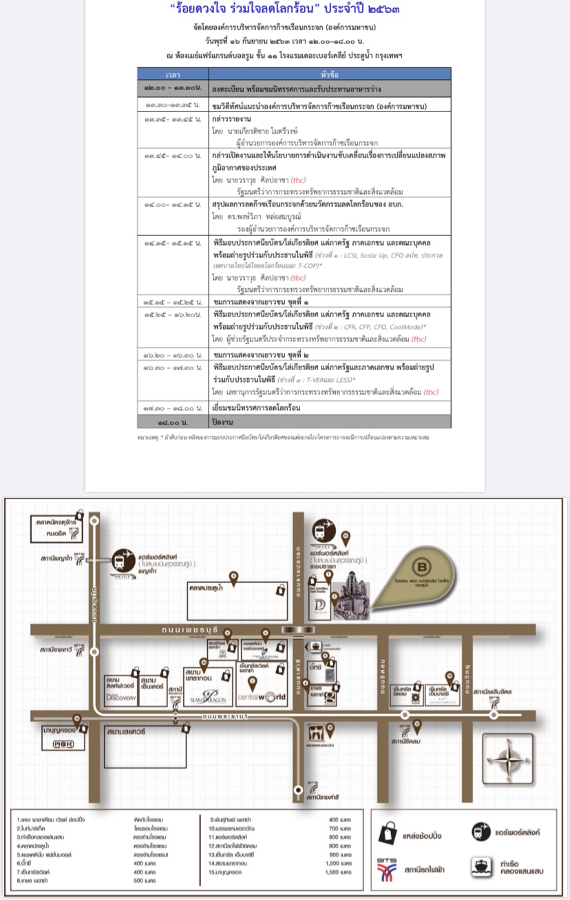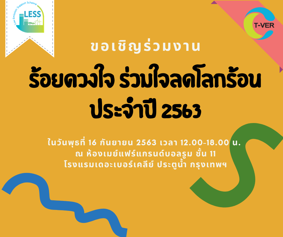 TGO กำหนดจัดพิธีขอบคุณและมอบประกาศนียบัตรในงาน “ร้อยดวงใจ ร่วมใจลดโลกร้อน” ประจำปี 2563 ภายใต้แนวคิดการจัดงาน “Climate Positive Actions – Together” เพื่อเชิดชูเกียรติผู้ประกอบการและภาคส่วนต่างๆ ที่เป็นตัวอย่างที่ดีในการบริหารจัดการและลดการปล่อยก๊าซเรือนกระจกภายในประเทศ โดยมีคุณจตุพร บุรุษพัฒน์ ปลัดกระทรวงทรัพยากรธรรมชาติและสิ่งแวดล้อม ให้เกียรติเป็นประธานในพิธีและมอบประกาศนียบัตร เพื่อเป็นสร้างขวัญและกำลังใจให้กับผู้ที่มีส่วนร่วมในการลดการปล่อยก๊าซเรือนกระจก