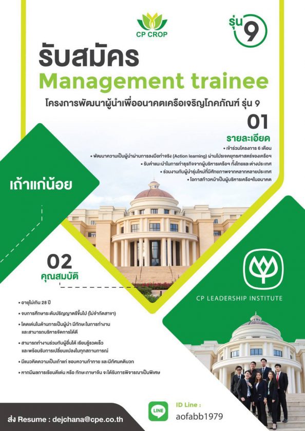 โอกาสดีๆมาแล้ว หนุ่มสาวที่มีpassion ในธุรกิจเกษตร เป็นนักกิจกรรมตัวยง ชอบงานท้าทาย มาร่วมงานกับเรา “โครงการพัฒนาผู้นำเพื่ออนาคตเครือเจริญโภคภัณฑ์ (เถ้าแก่น้อย)
