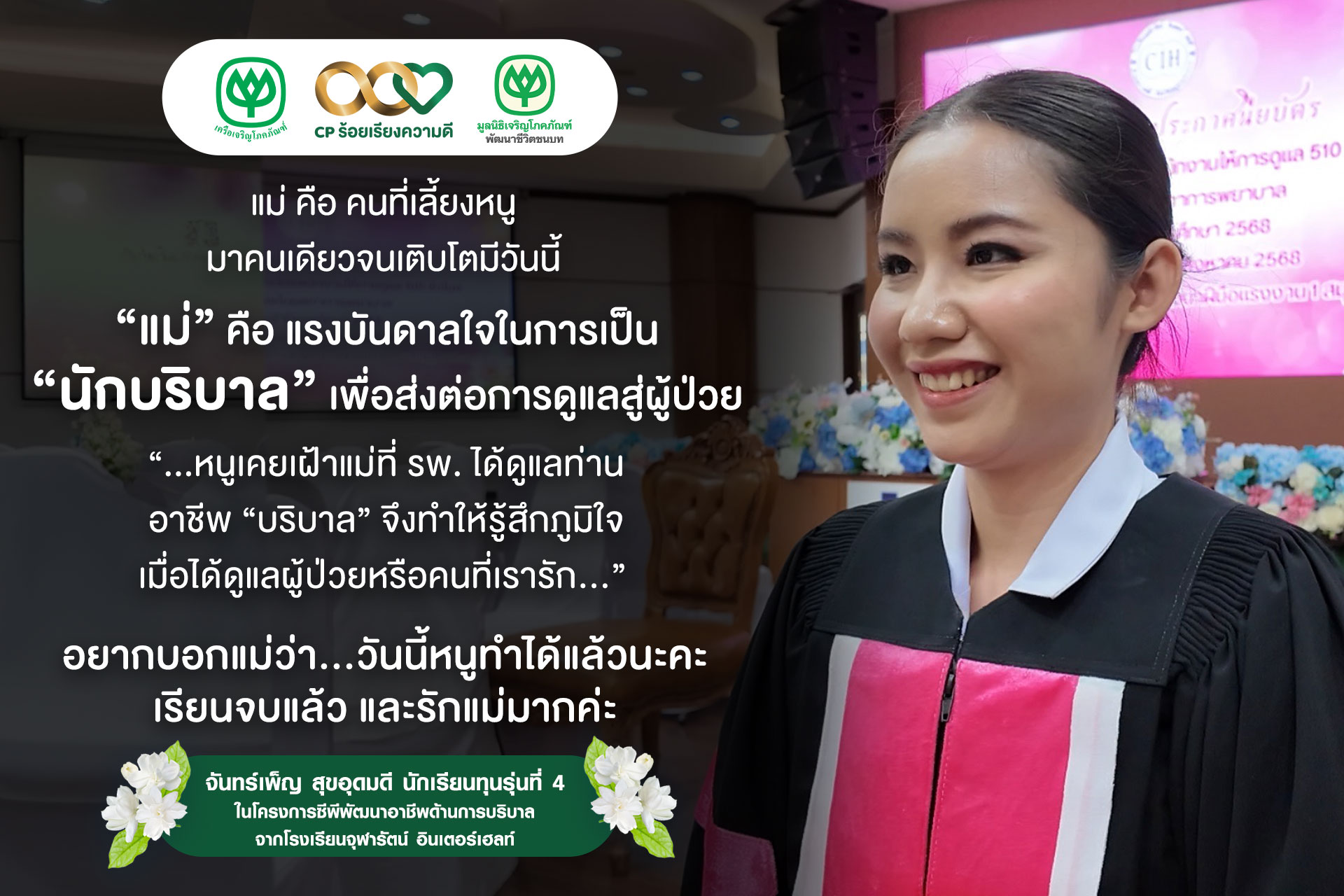 #เครือซีพี #ซีพี #มูลนิธิเจริญโภคภัณฑ์พัฒนาชีวิตชนบท #โครงการซีพีพัฒนาอาชีพด้านการบริบาล #อาชีพบริบาล #วันแม่แห่งชาติ #กตัญญู #ทุนการศึกษา