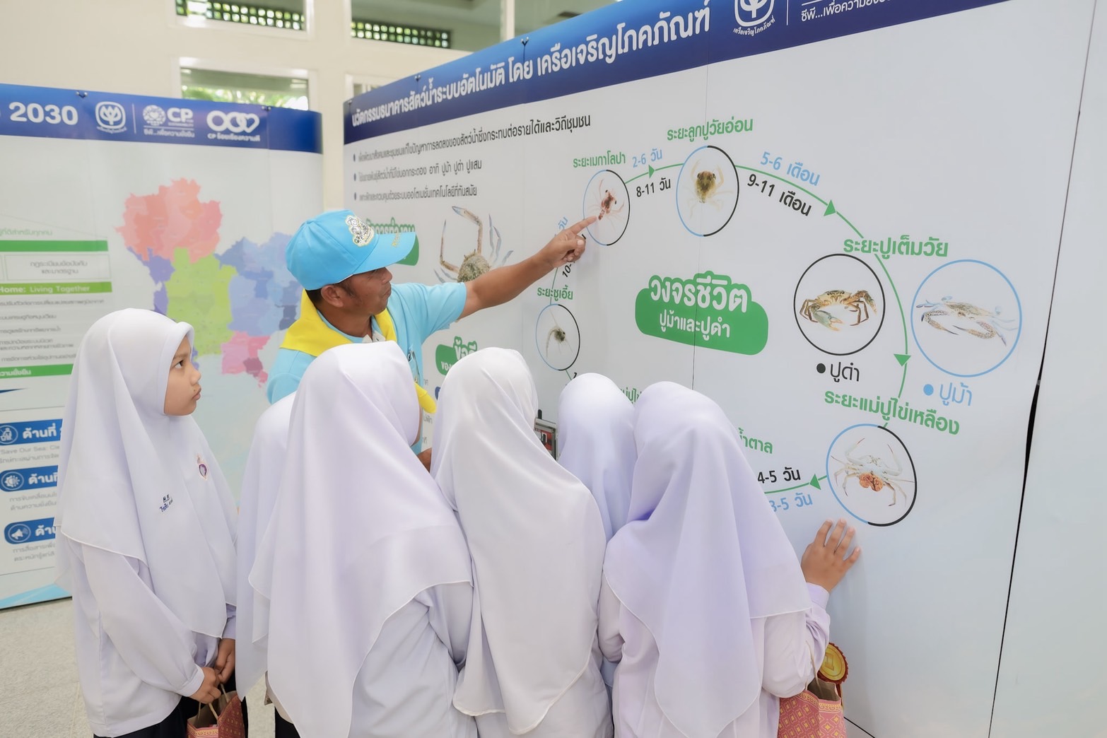 ดร.ปฐพร เกื้อนุ้ย ผู้จัดการฝ่าย ด้านพัฒนาความยั่งยืนภาครัฐและกิจการสัมพันธ์ เครือเจริญโภคภัณฑ์ พร้อมด้วยทีมปฏิบัติการ ได้ร่วมออกบูธแสดงนวัตกรรมด้านการเพาะเลี้ยงสัตว์น้ำอย่างยั่งยืน เพื่อเผยแพร่ความรู้ด้านการอนุรักษ์ทรัพยากรทางทะเล การฟื้นฟูระบบนิเวศชายฝั่ง รวมถึงแสดงผลงานและกิจกรรมที่ดำเนินงานในพื้นที่จังหวัดปัตตานีและนราธิวาส ซึ่งได้รับความสนใจจากประชาชนและผู้เข้าร่วมงานเป็นจำนวนมาก สะท้อนถึงบทบาทของภาคเอกชนที่ร่วมขับเคลื่อนการพัฒนาที่ยั่งยืนร่วมกับชุมชนและภาครัฐ