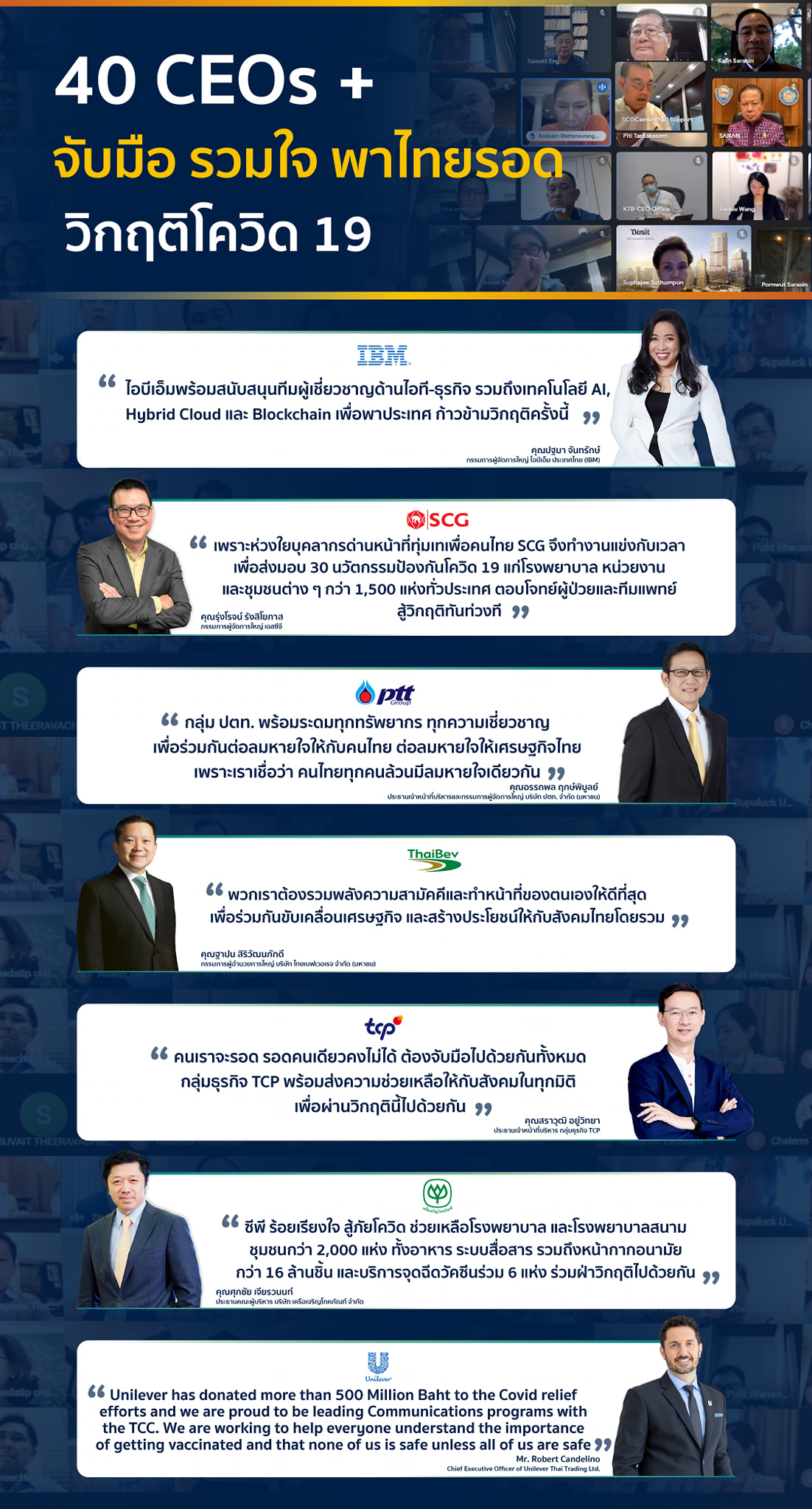 40 CEOs + จับมือ รวมใจ พาไทยรอด วิกฤติโควิด 19