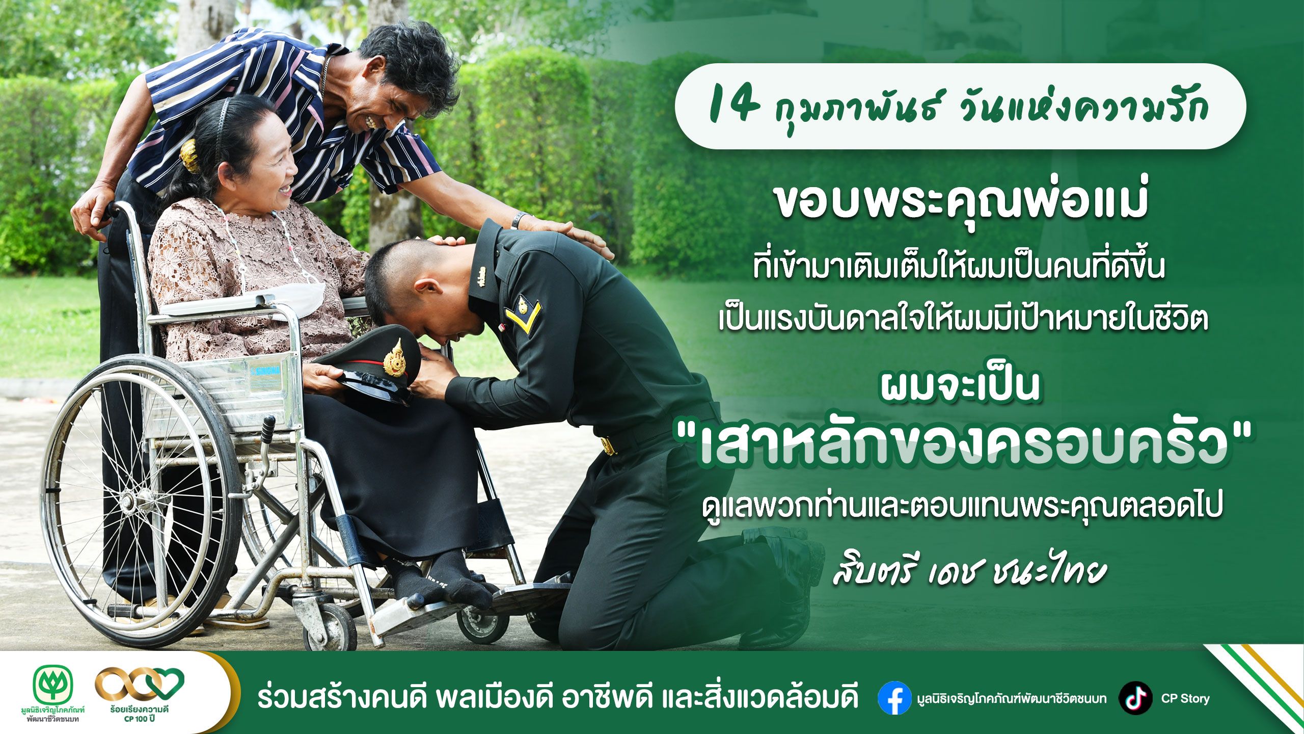 เนื่องในวันแห่งความรักมูลนิธิเจริญโภคภัณฑ์พัฒนาชีวิตชนบท ขอยกตัวอย่างของความรัก จากครอบครัว “สอิ้งรัมย์” ครอบครัวอุปการะ ที่ได้ช่วยเติมเต็มความอบอุ่นในจิตใจ ให้กับน้องเดช ชนะไชย เด็กอุปการะ ในโครงการครอบครัวอุปการะในชุมชนวัฒนธรรม จนทำให้ น้องเดช ได้รู้ความหมายและเห็นคุณค่าของคำว่า “รัก” ที่ครอบครัวมอบให้เสมอมา “จนเกิดเป็นแรงบันดาลใจให้มีเป้าหมายในชีวิต”