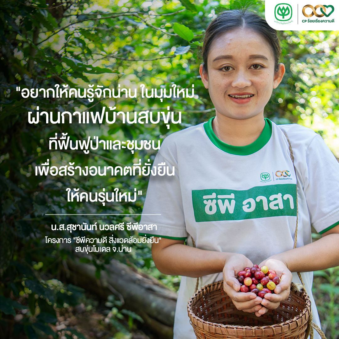 โครงการ “ซีพีความดี สิ่งแวดล้อมยั่งยืน” สบขุ่นโมเดล จังหวัดน่าน เป็นส่วนหนึ่งของนโยบายการพัฒนาอย่างยั่งยืนของเครือเจริญโภคภัณฑ์ ซึ่งมุ่งขับเคลื่อน “3 Big Goals สู่ความยั่งยืน” ได้แก่ การมุ่งสู่ Carbon Neutrality ภายในปี 2573 และ Net Zero ภายในปี 2593 การลดขยะและของเสียเป็นศูนย์ตามหลักเศรษฐกิจหมุนเวียน รวมถึงการส่งเสริมการเข้าถึงการศึกษาที่มีคุณภาพให้แก่เยาวชนและผู้ด้อยโอกาสทั่วประเทศ โดยเครือเจริญโภคภัณฑ์มุ่งสนับสนุนการทำเกษตรปลอดการเผา 100% และส่งเสริมการปรับเปลี่ยนอาชีพจากพืชเชิงเดี่ยวสู่พืชเศรษฐกิจมูลค่าสูงที่เป็นมิตรต่อสิ่งแวดล้อม ภายใต้แนวคิด “กาแฟสร้างป่า” ซึ่งช่วยลดการใช้พื้นที่ ลดการเผา และฟื้นฟูทรัพยากรธรรมชาติ โดยในพื้นที่บ้านสบขุ่นได้สนับสนุนการปลูกไม้ป่าและไม้ผลรวมกว่า 601,574 ต้น ฟื้นฟูพื้นที่ป่ากว่า 7,912 ไร่ สร้างรายได้ให้เกษตรกรกว่า 228 ราย พร้อมพัฒนาองค์ความรู้ด้านกาแฟตั้งแต่ต้นน้ำถึงปลายน้ำ ควบคู่กับการสร้างแหล่งเรียนรู้และการสนับสนุนโอกาสทางการศึกษาแก่เด็กและเยาวชนในชุมชนอย่างต่อเนื่อง