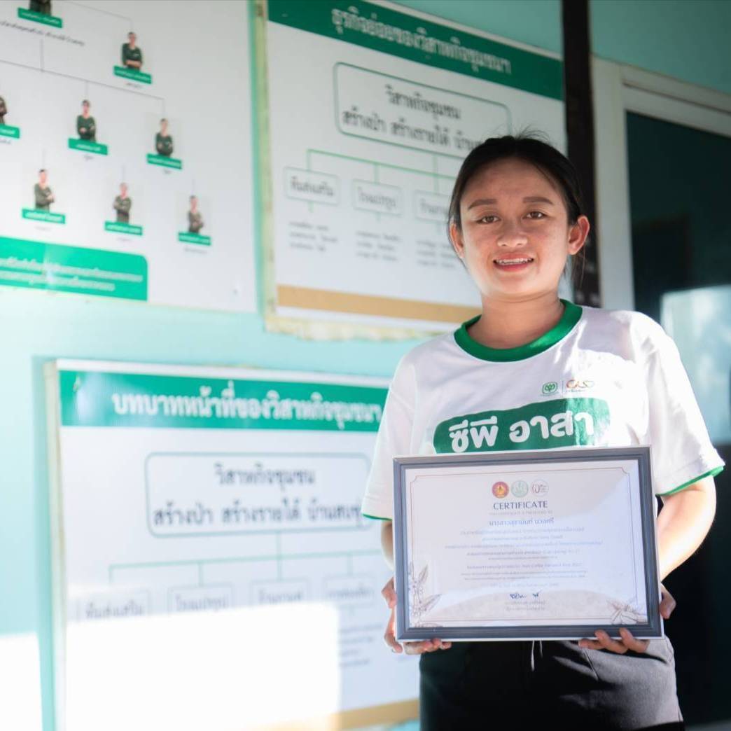 หนึ่งในนั้นคือ น.ส.สุชานันท์ นวลศรี หรือ “น้องนุ่น” ลูกหลานของชุมชนที่ก้าวขึ้นมาเป็นกำลังหลักในการพัฒนากาแฟสร้างป่าของบ้านเกิด ผ่านการเข้าร่วมโครงการ ซีพีอาสา พัฒนาบ้านเกิด